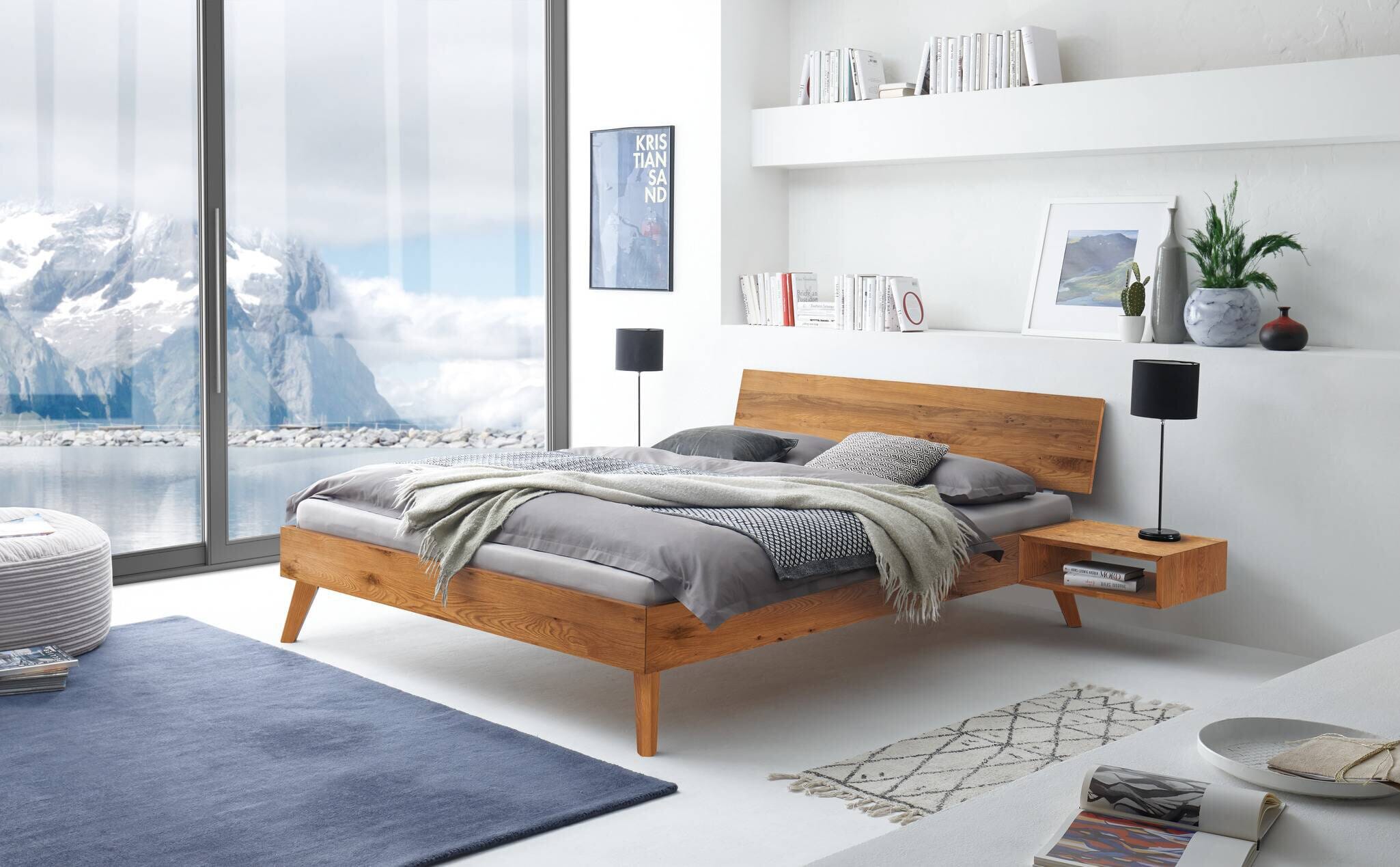 Geborgenheit und Beständigkeit für eine geruhsame Nacht – die typisch kräftige Struktur dieses hellen, massiven Eichenholzes verleiht dem Möbel eine starke, behagliche Ausstrahlung.