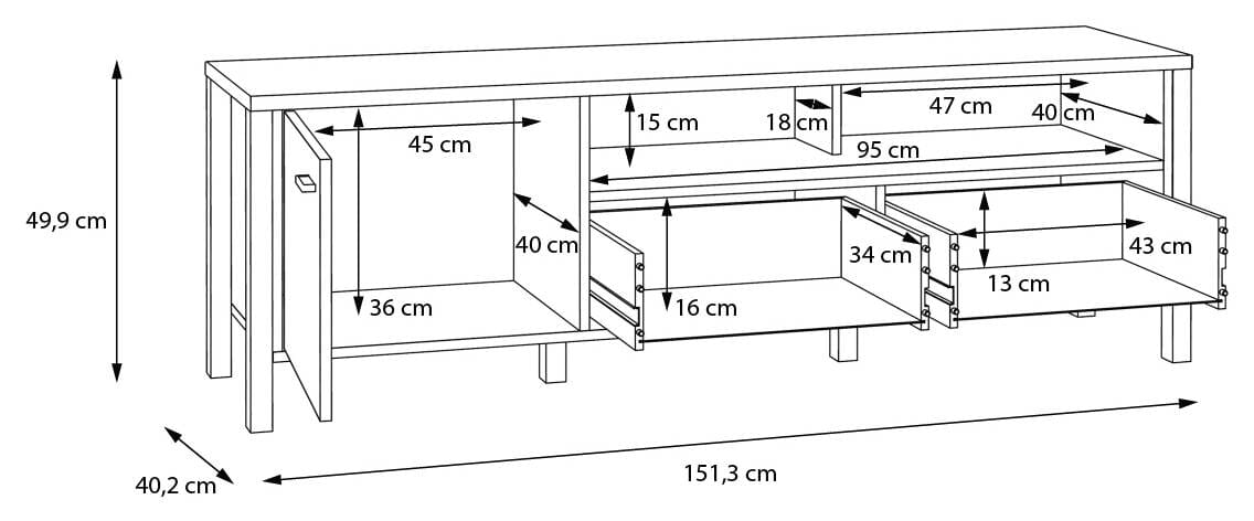 - Maße: B/H/T 151,3 x 49,9 x 40,2 cm