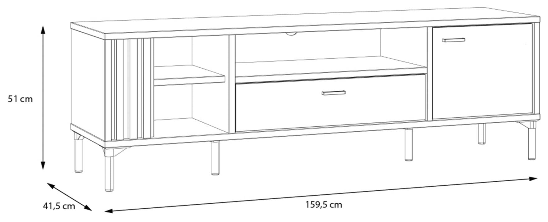 - Maße: B/H/T 159,2 x 51 x 41,5 cm