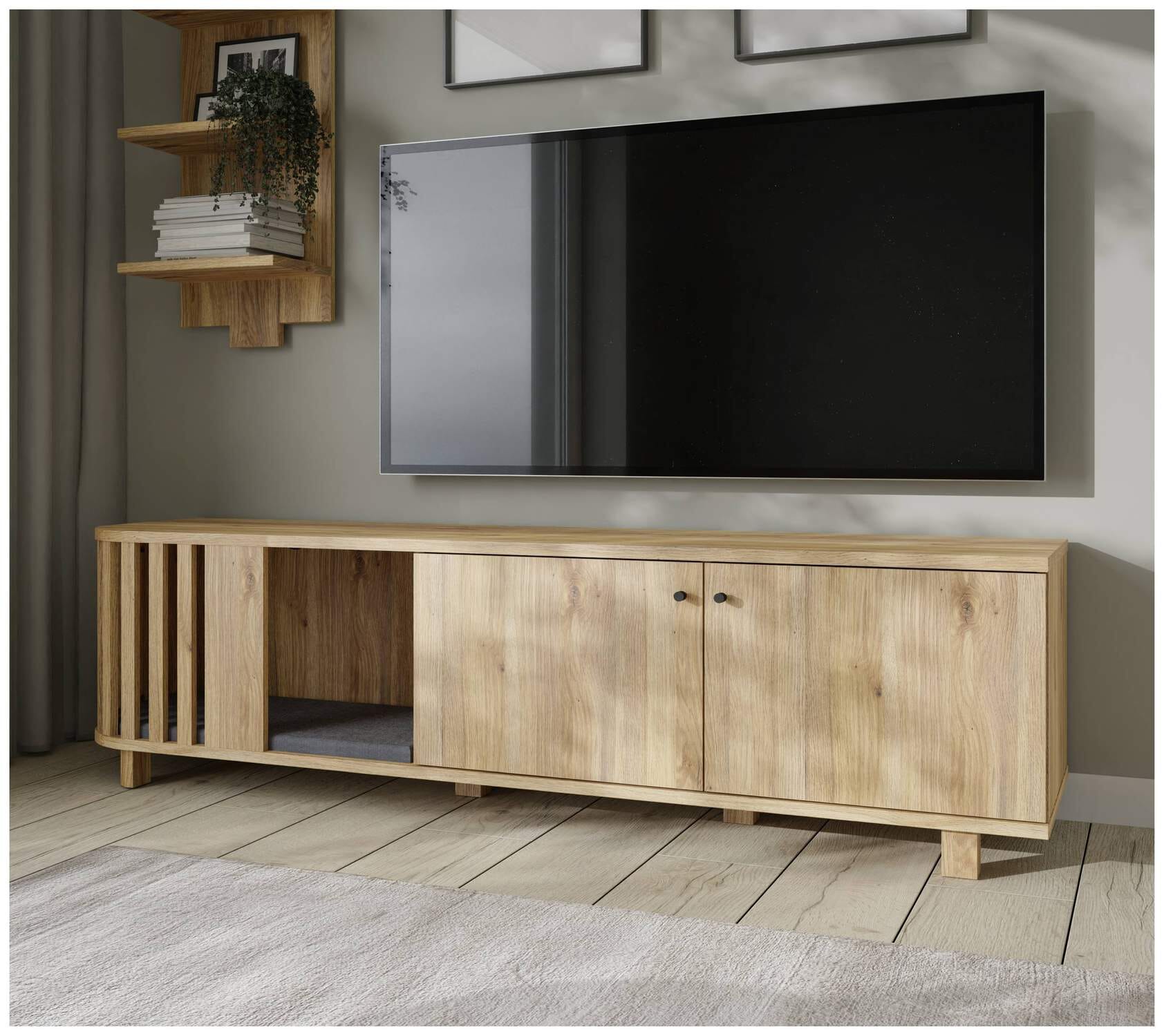 Alles, was Sie für Ihren Fernsehabend benötigen, können Sie in diesem Lowboard unterbringen.