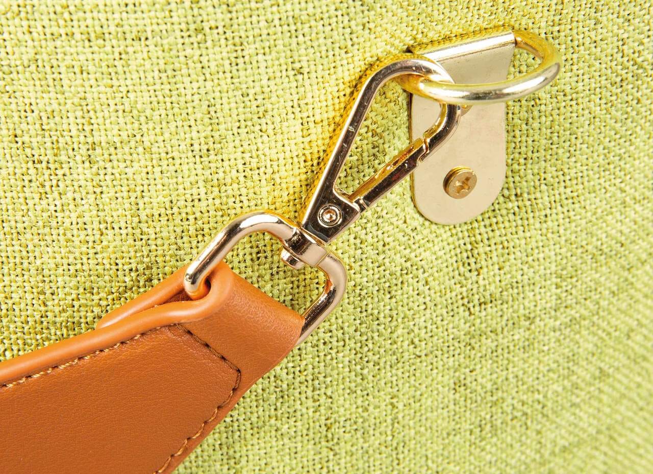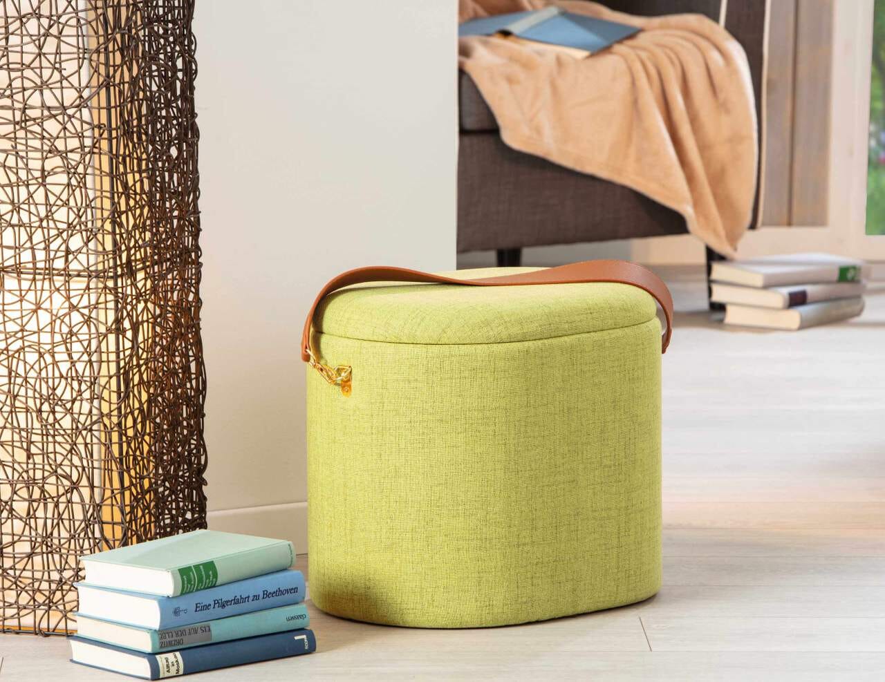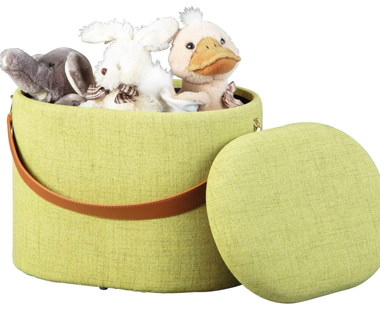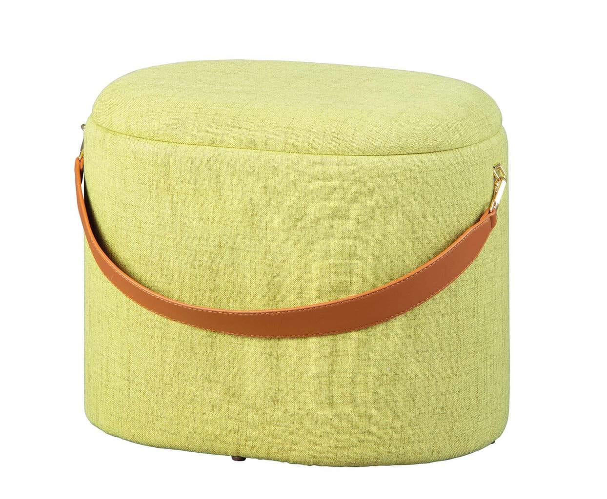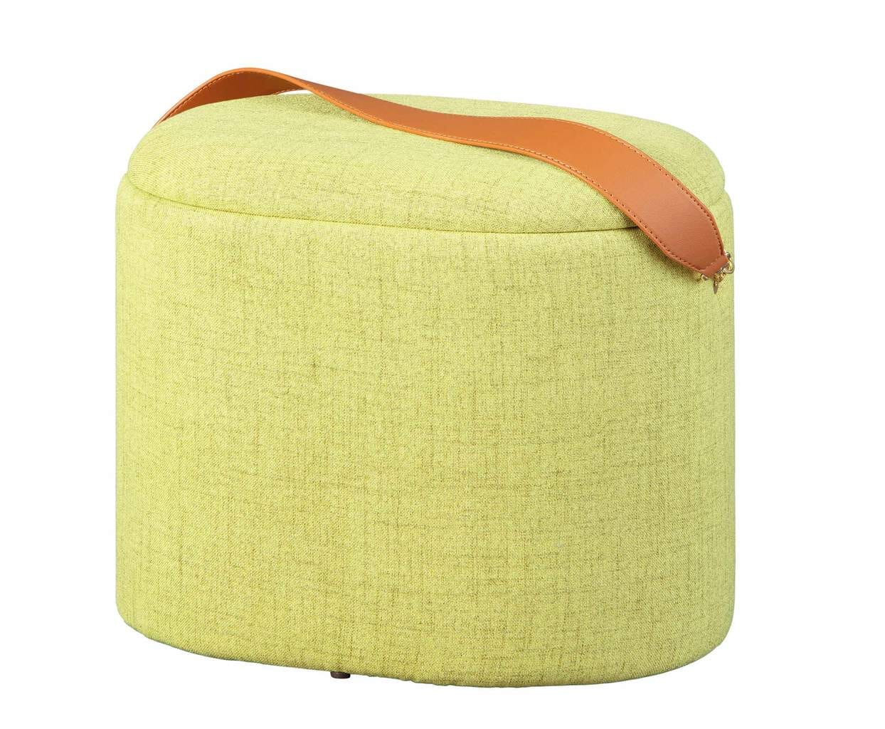 Polsterhocker DILIA mit Stauraum Stoffbezug in Grün und Trageband