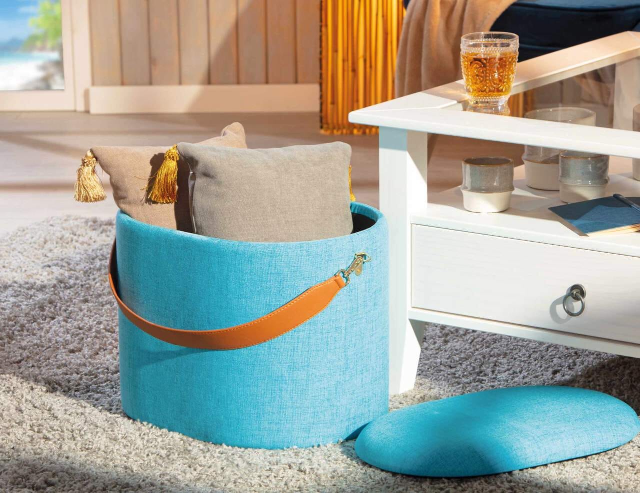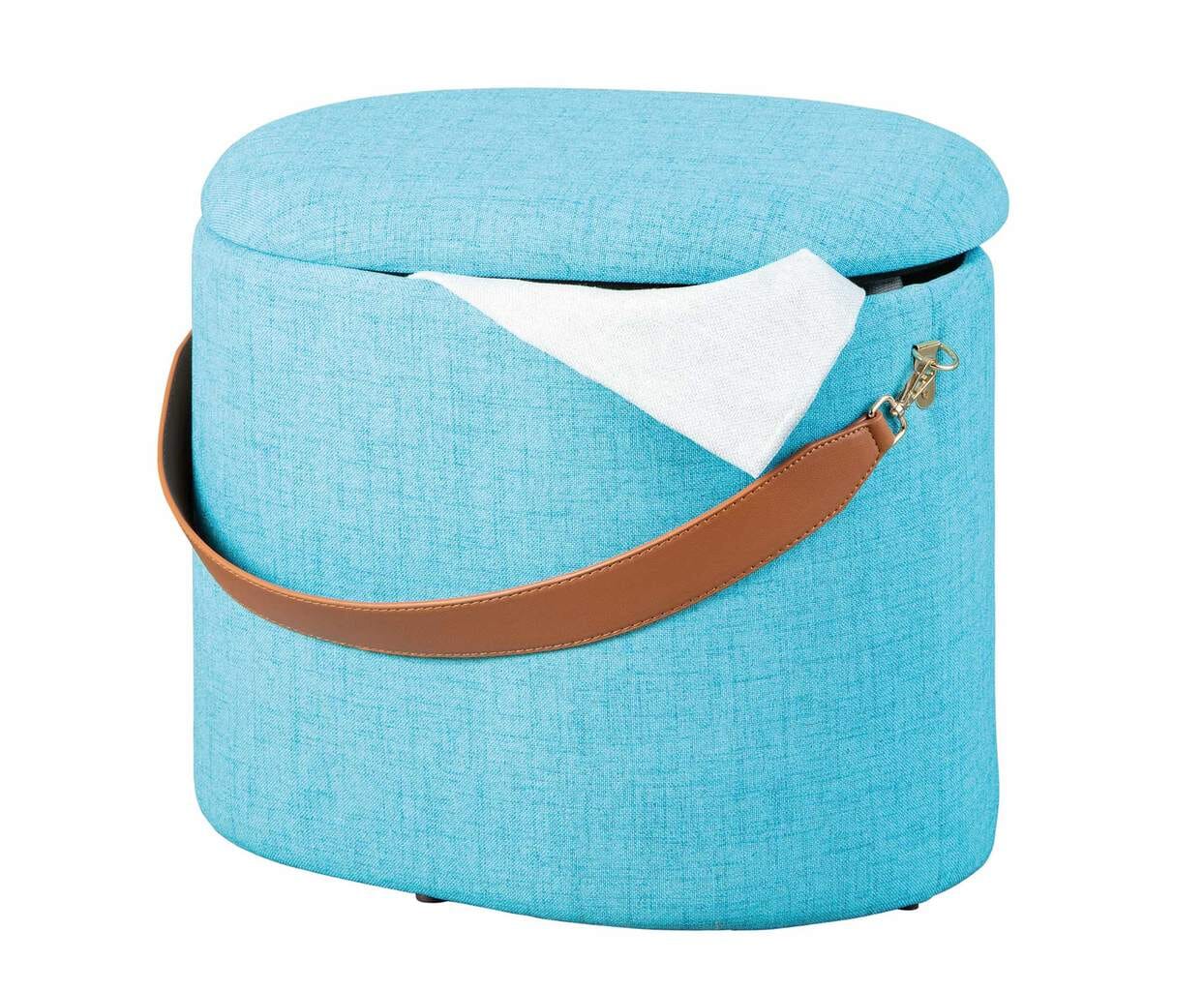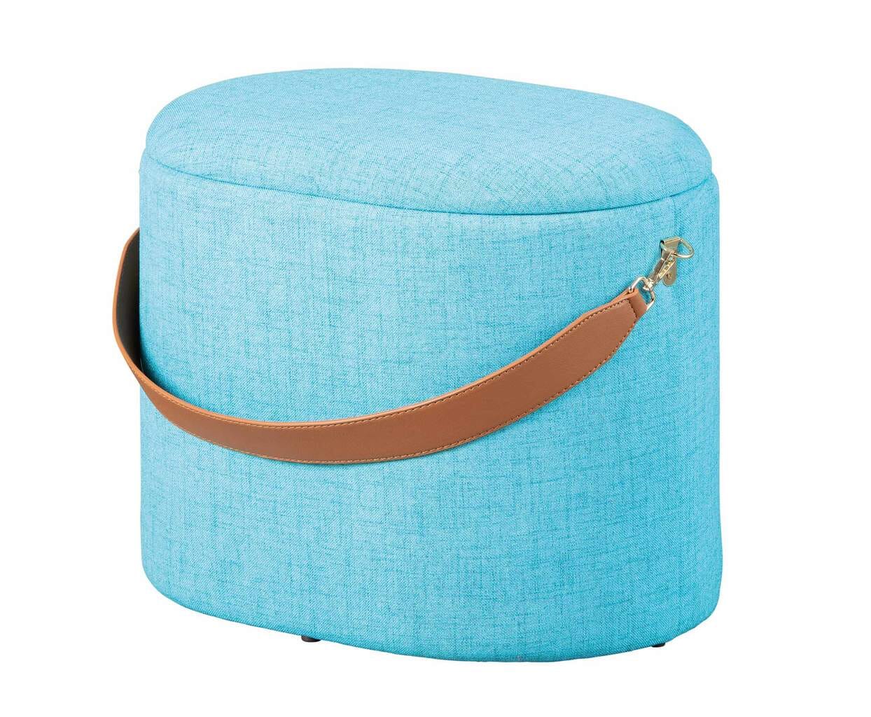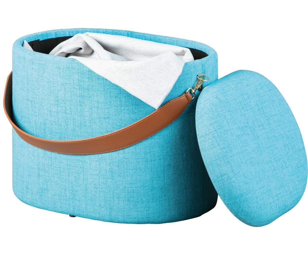 Polsterhocker Hocker DILIA mit Stoffbezug in Blau und Trageband