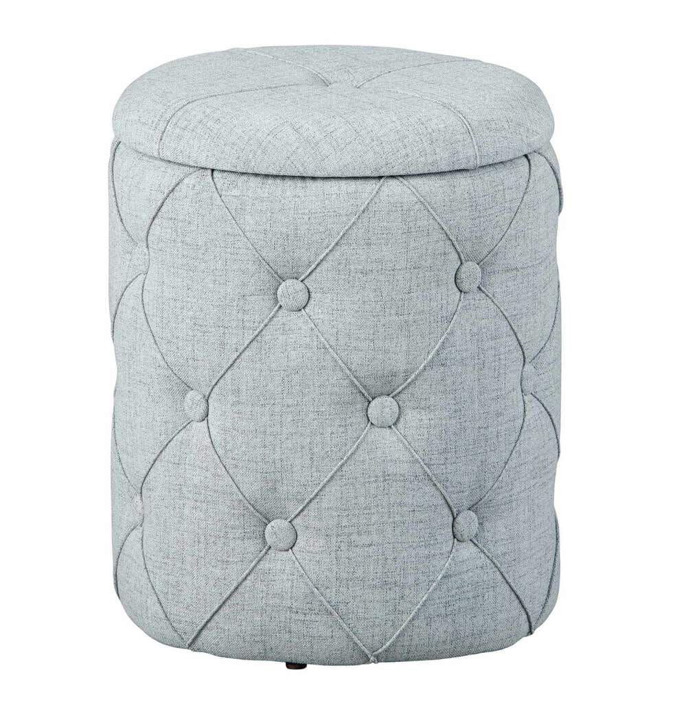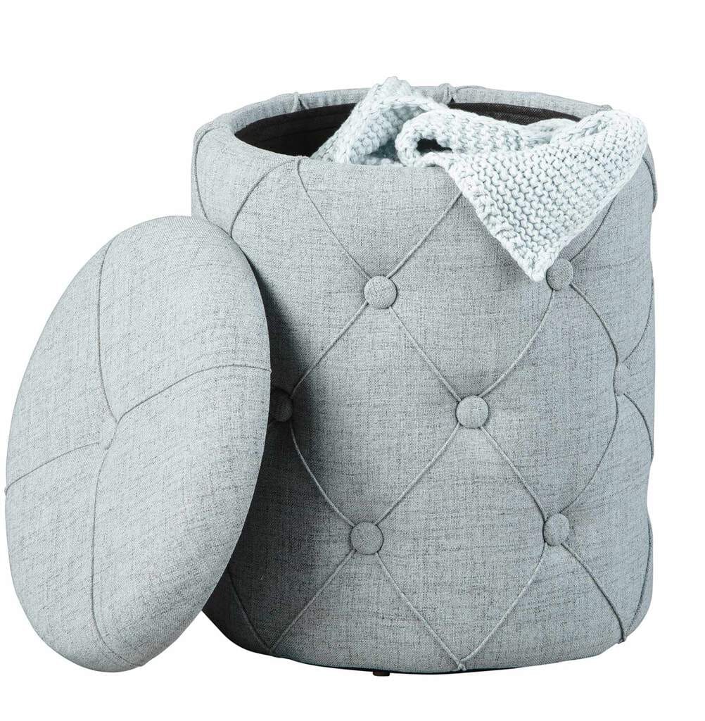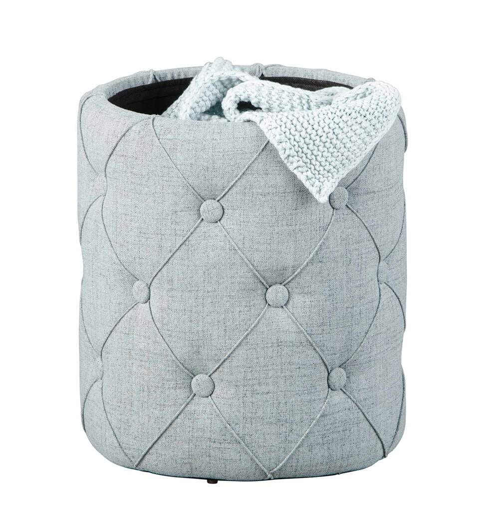 Polsterhocker Hocker YAPAK mit Stoffbezug in Grau und Knopfheftung