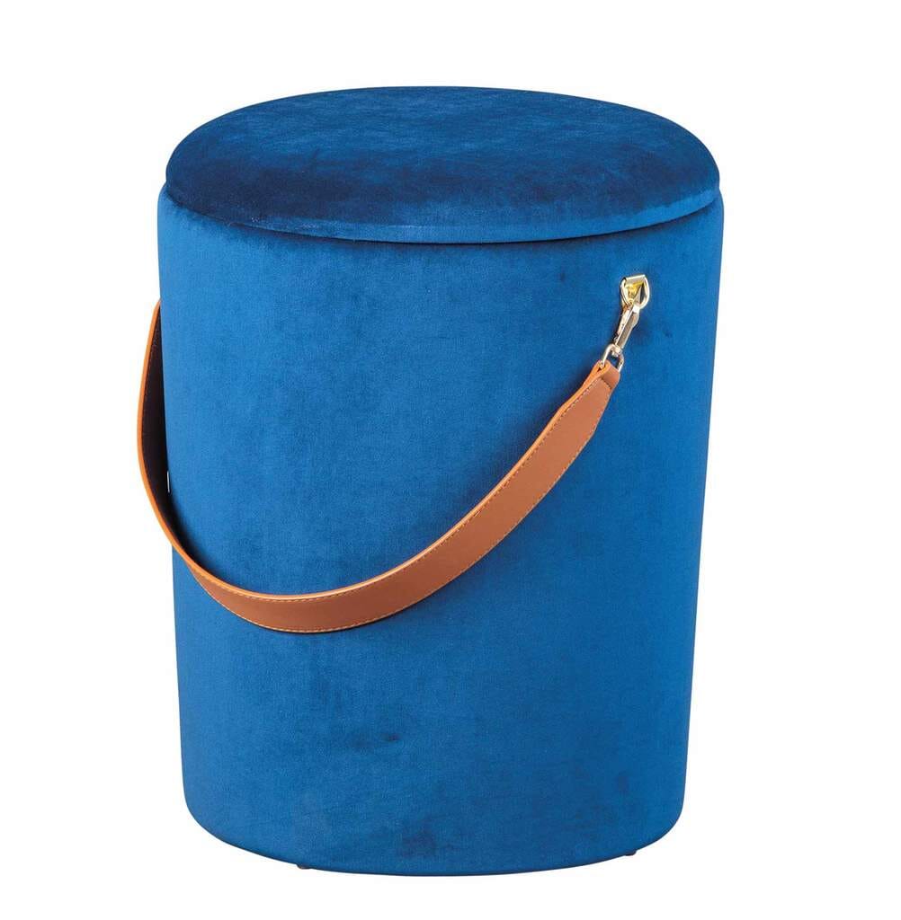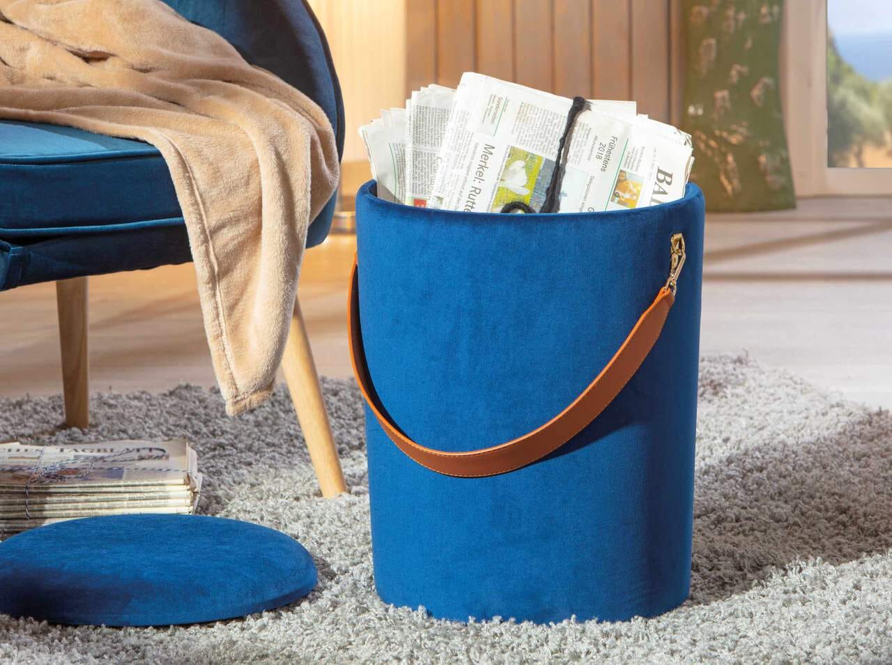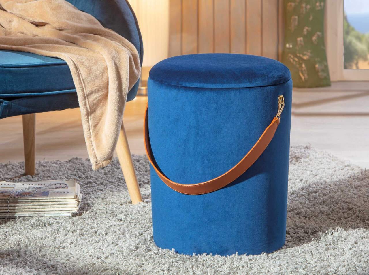 Polsterhocker PAPUA Samtbezug Blau Hocker mit Stauraum