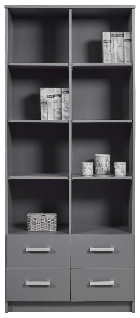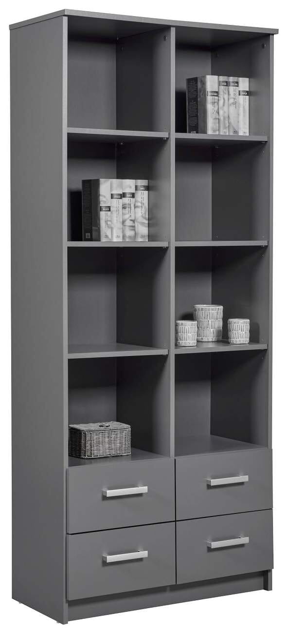 Bücherregal ELENZIO, Graphit Grau mit 4 Schubladen