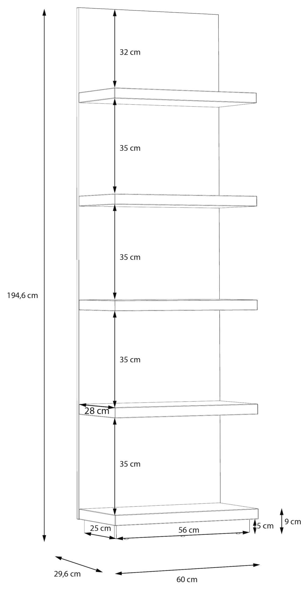 - Maße: B/H/T 60 x 194,6 x 29,6 cm