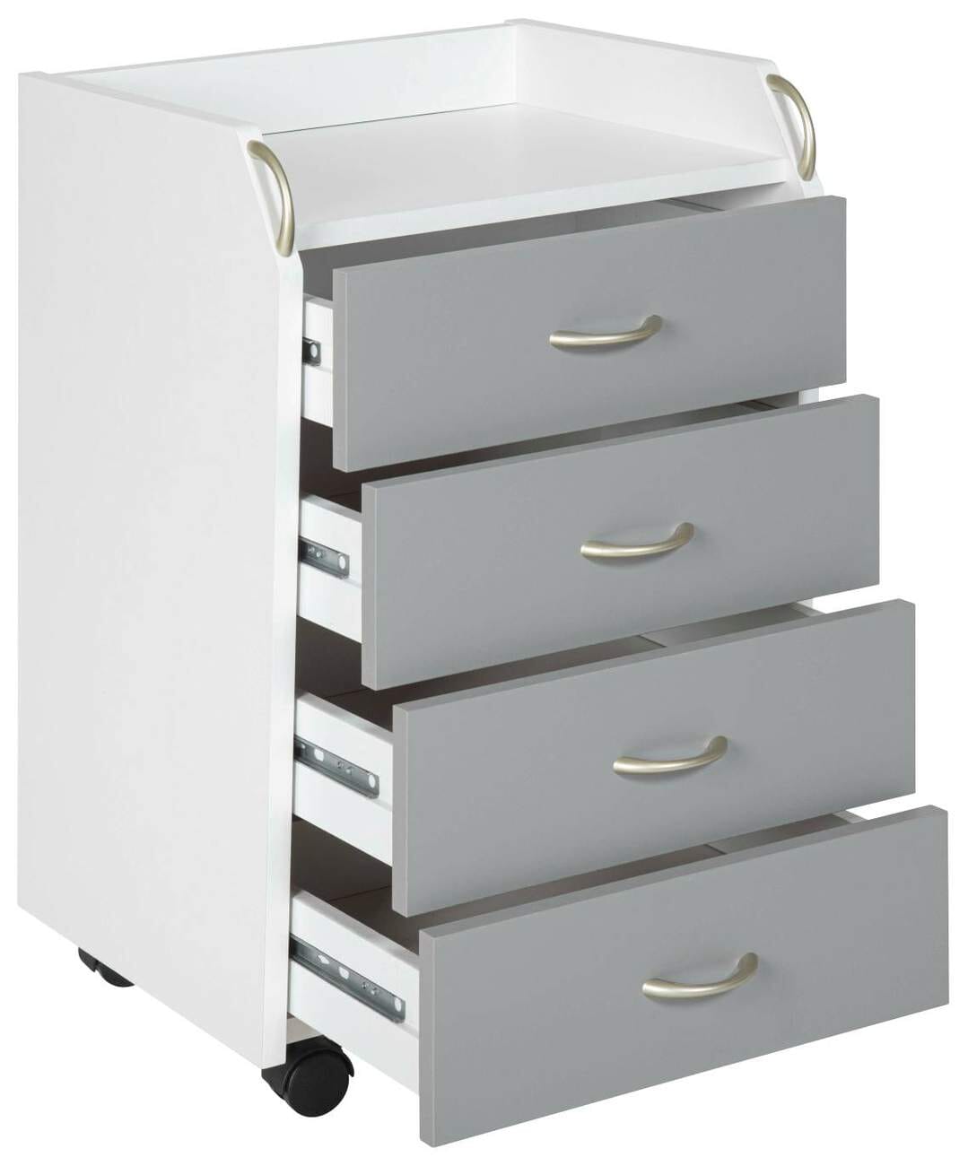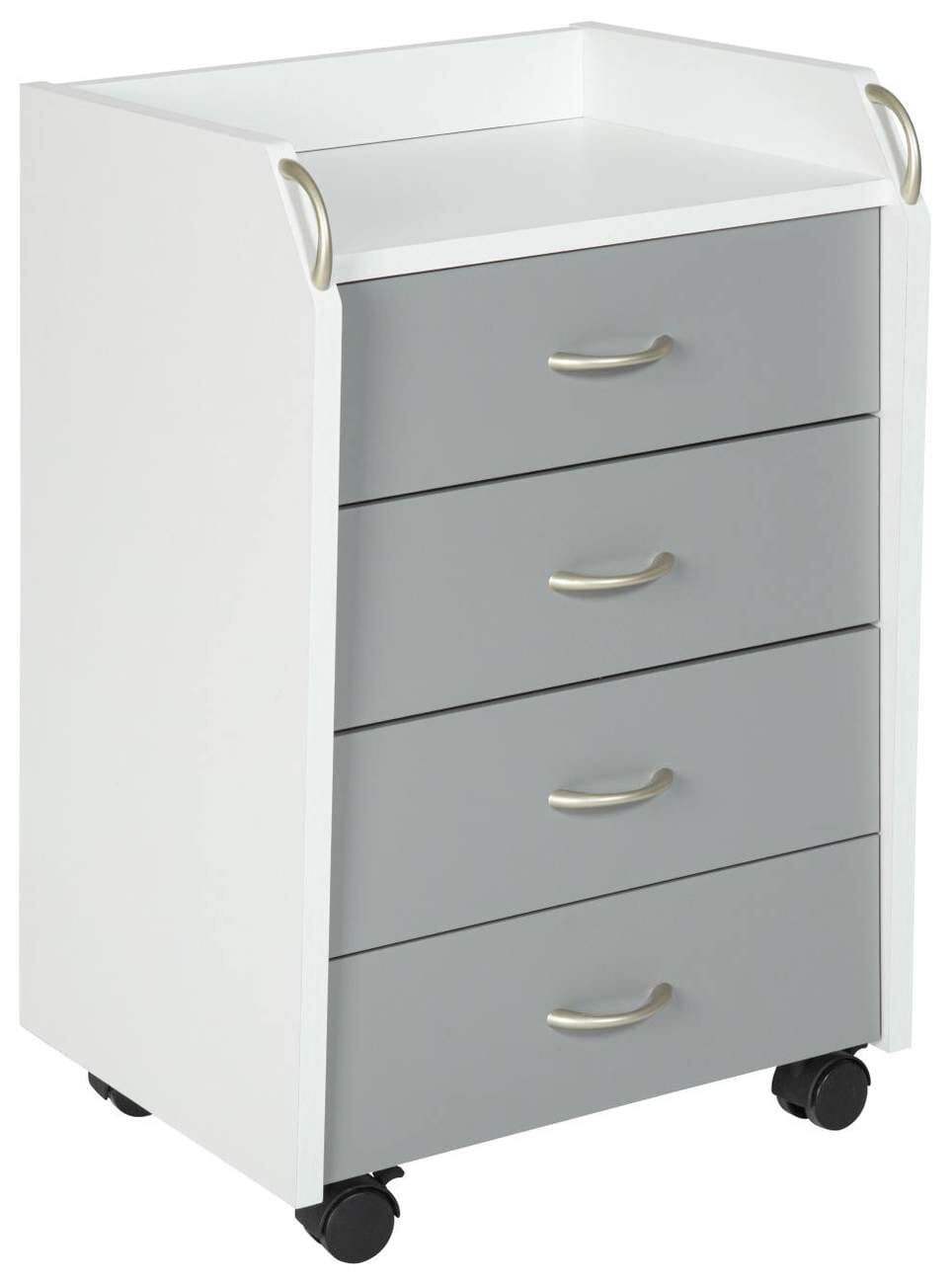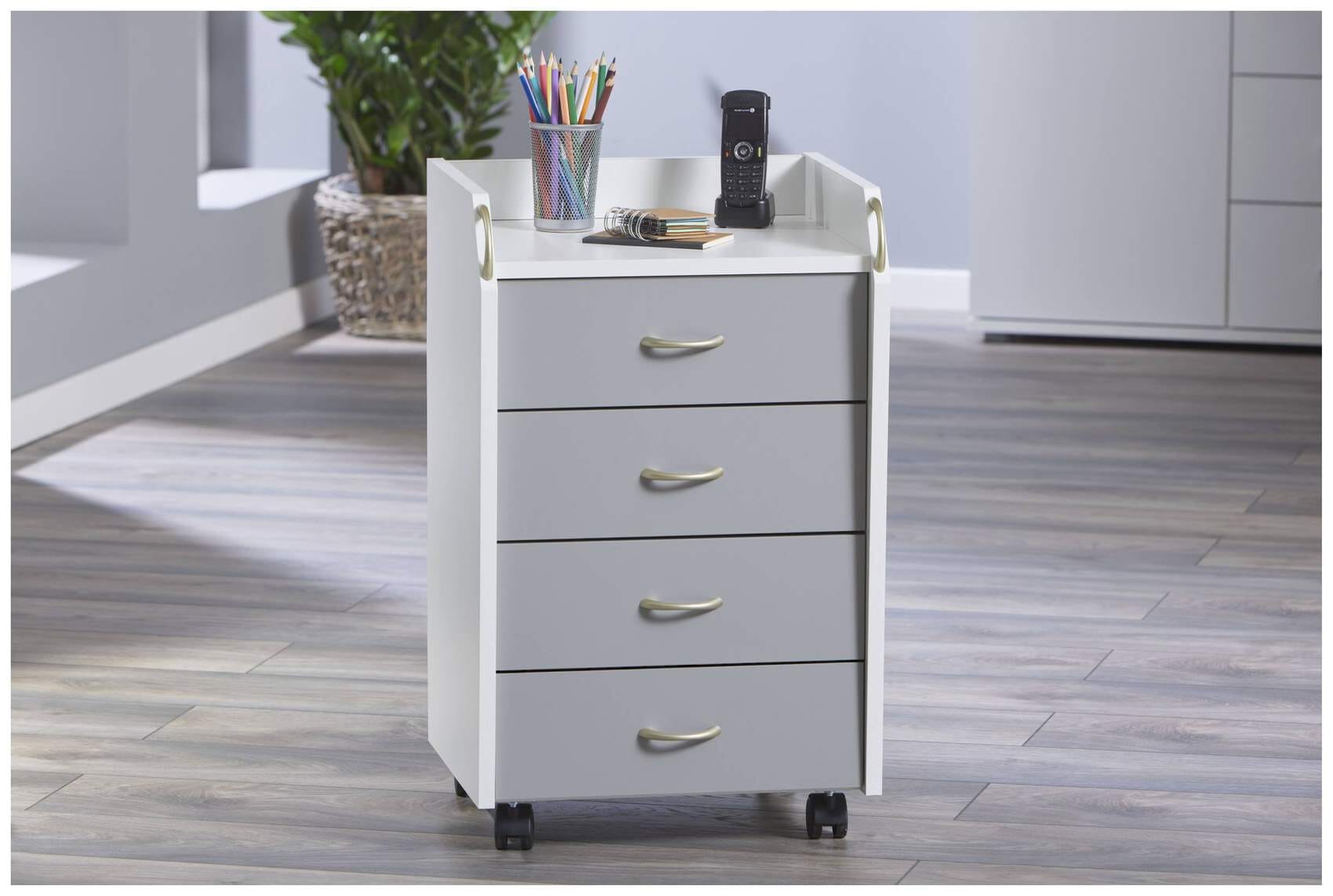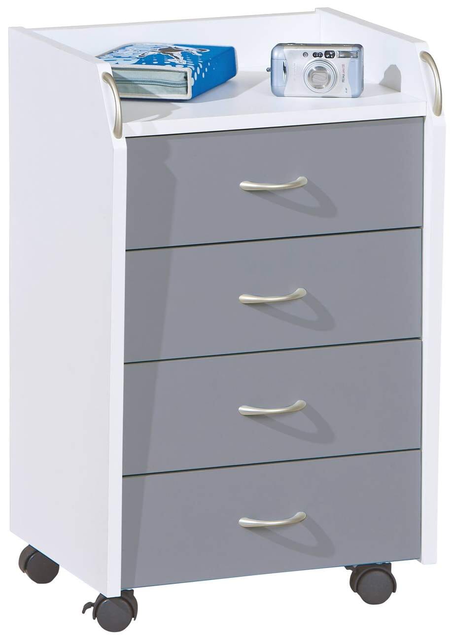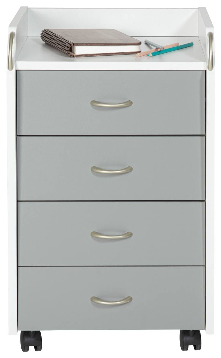Rollcontainer PRINTI mit 4 Schubladen Grau / Weiß