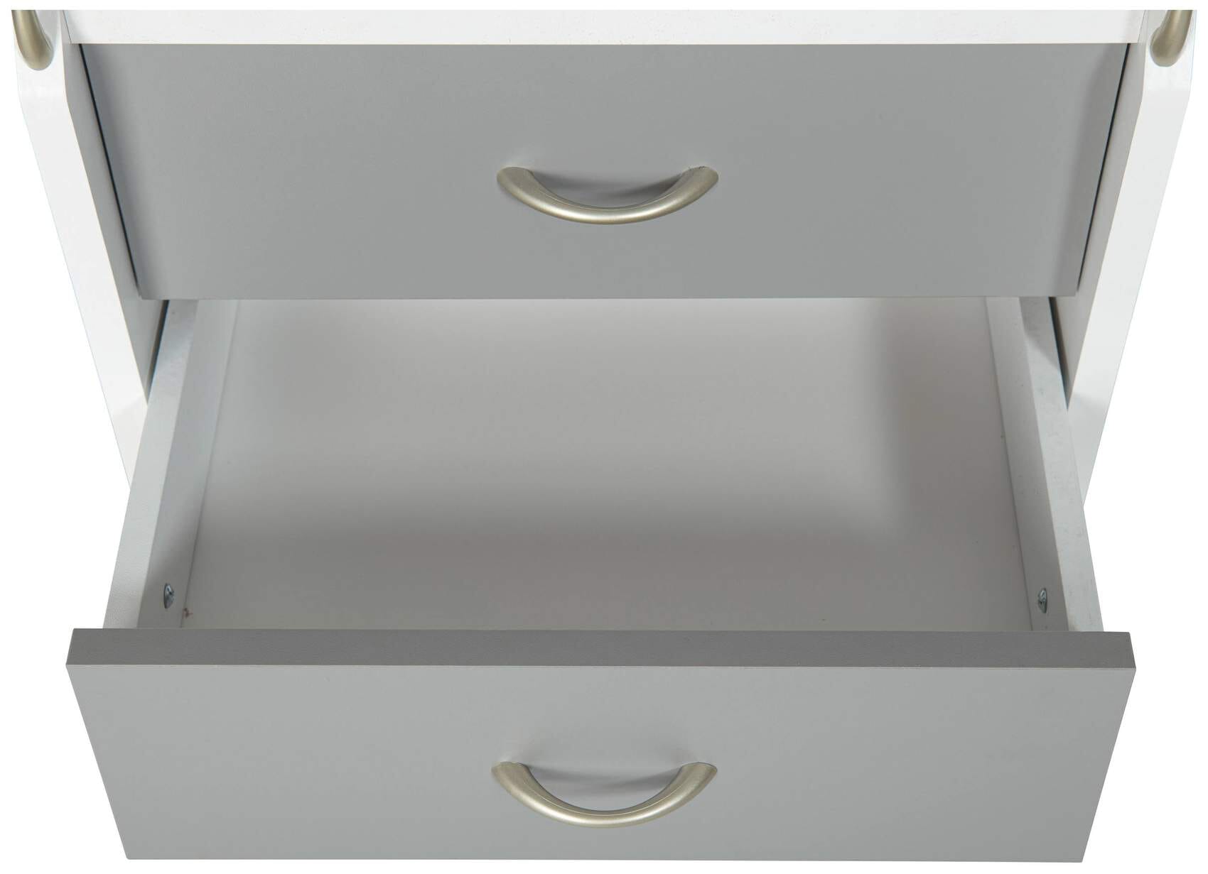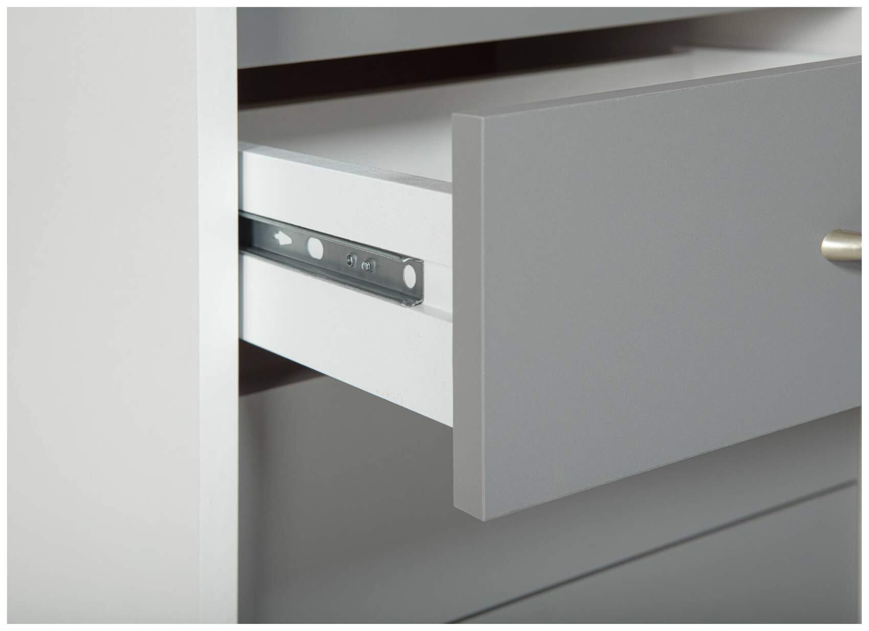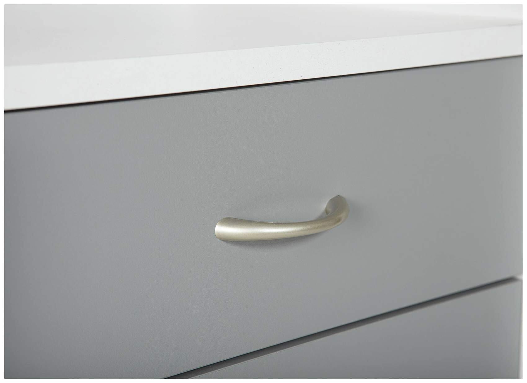 Aber nicht nur in seinem Inneren sorgt dieser Container für Freude. Oben drauf wird es erst so richtig nett, denn dort können Sie schnell alles deponieren, was Sie gerne zur Hand haben möchten. Für die Haltbarkeit zeichnet hier das Material Spanplatte verantwortlich, das noch einmal beschichtet wurde, und zwar in strahlendem, klarem Weiß und zeitlosem Grau.