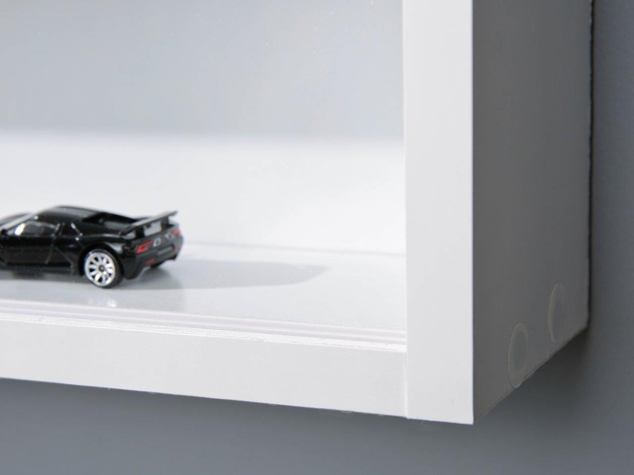 Die beiden Glasschiebetüren sorgen dafür, dass Sie bei Bedarf immer an die Matchbox Autos, die kleinen Steifftiere oder Ihre blauen Glasvasen heran kommen. Wenn Gäste etwas näher betrachten wollen: Bitte sehr, auch das ist möglich. Die Glasscheiben sorgen für Schutz und gleichzeitig für Transparenz. Ihre Sammlung kann sich also sehen lassen und punktuell auch zur Inspektion heraus geholt werden.