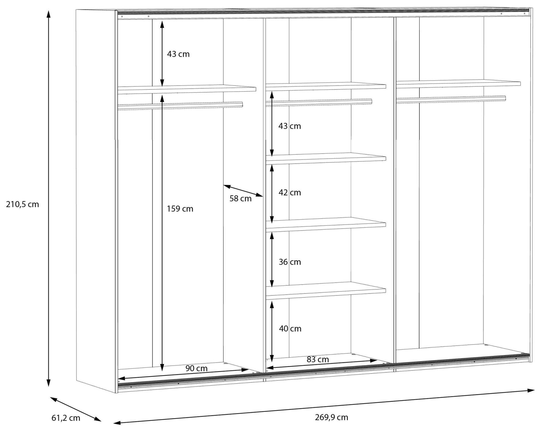 - Maße: B/H/T 269,9 x 210,5 x 61,2 cm