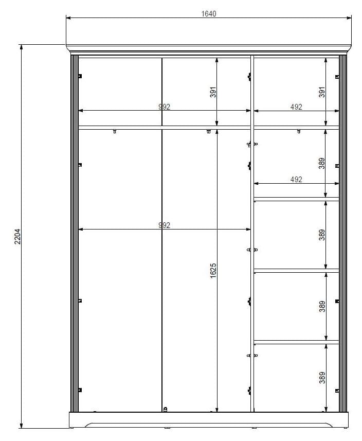 - rechts: 1 Montageboden, 3 Einlegeböden verstellbar