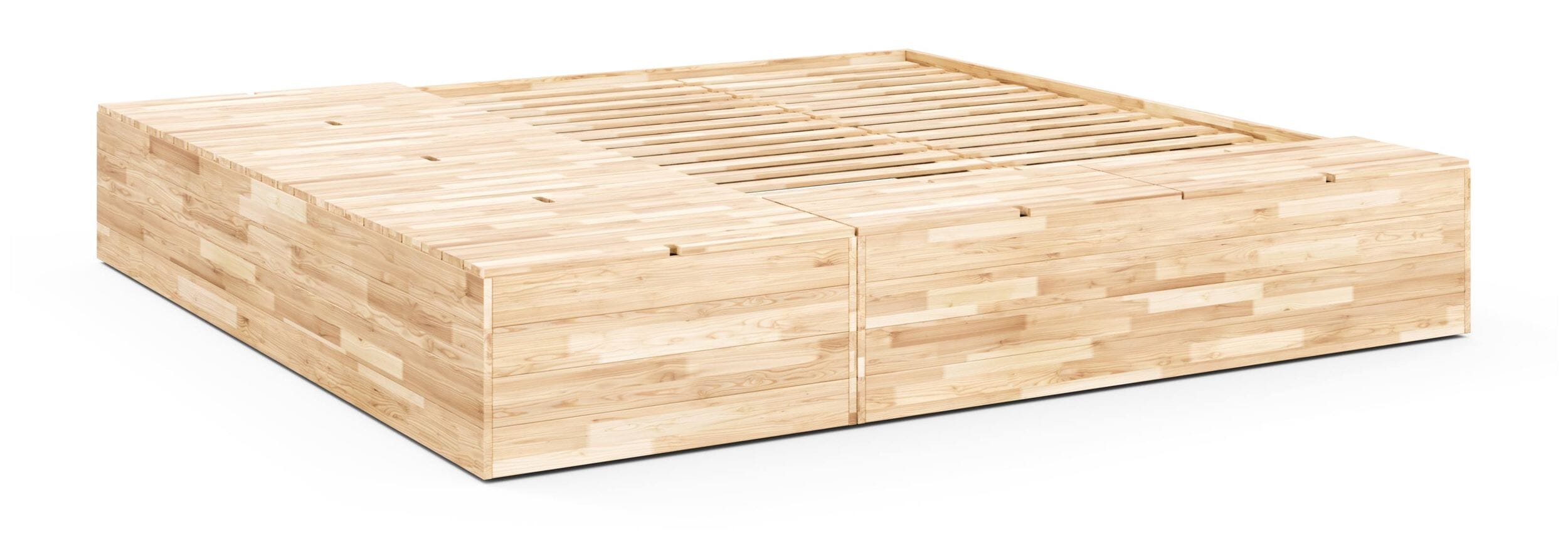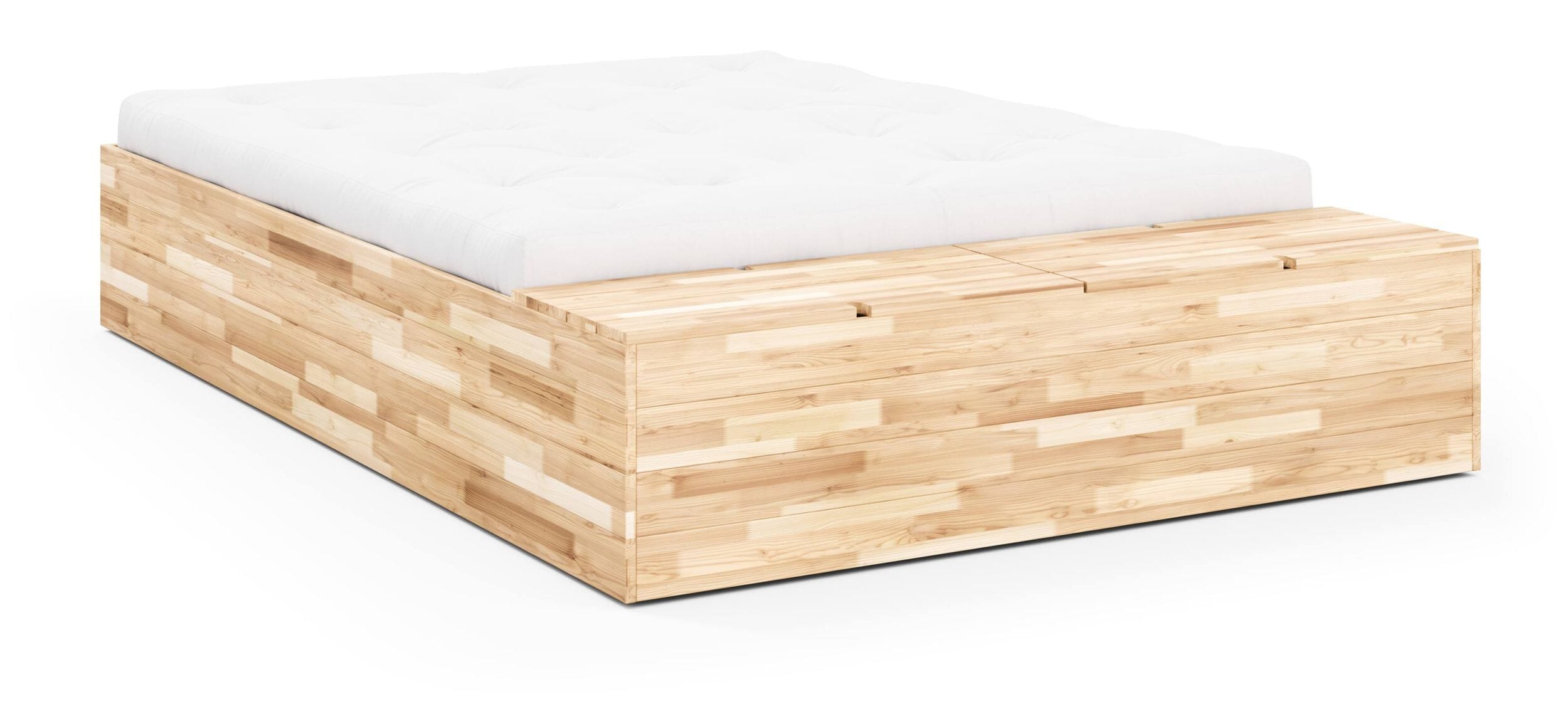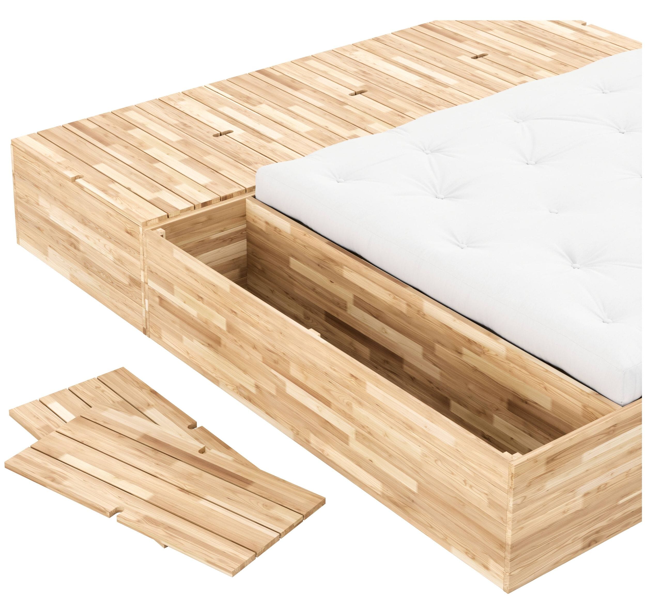 Massivholzbett BASEMENT BED mit viel Stauraum, Gestell Kiefer natur lackiert