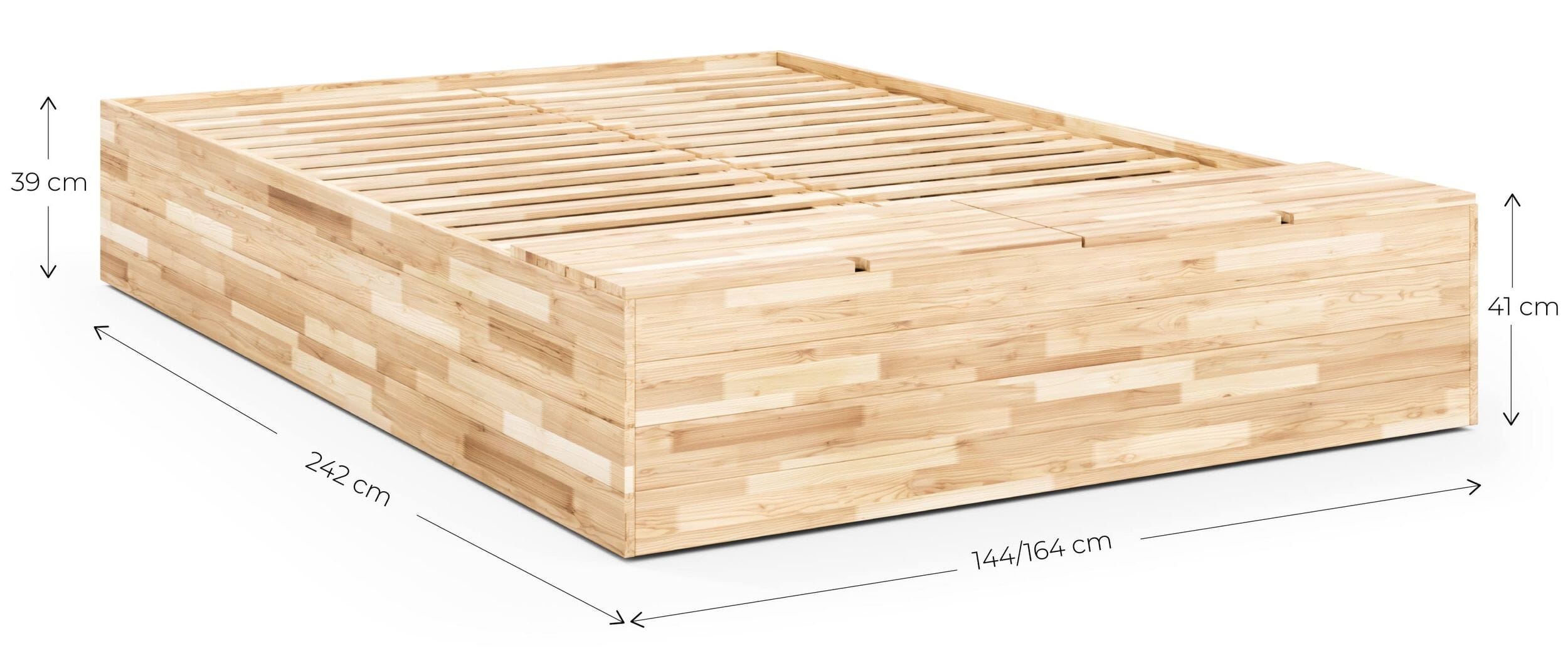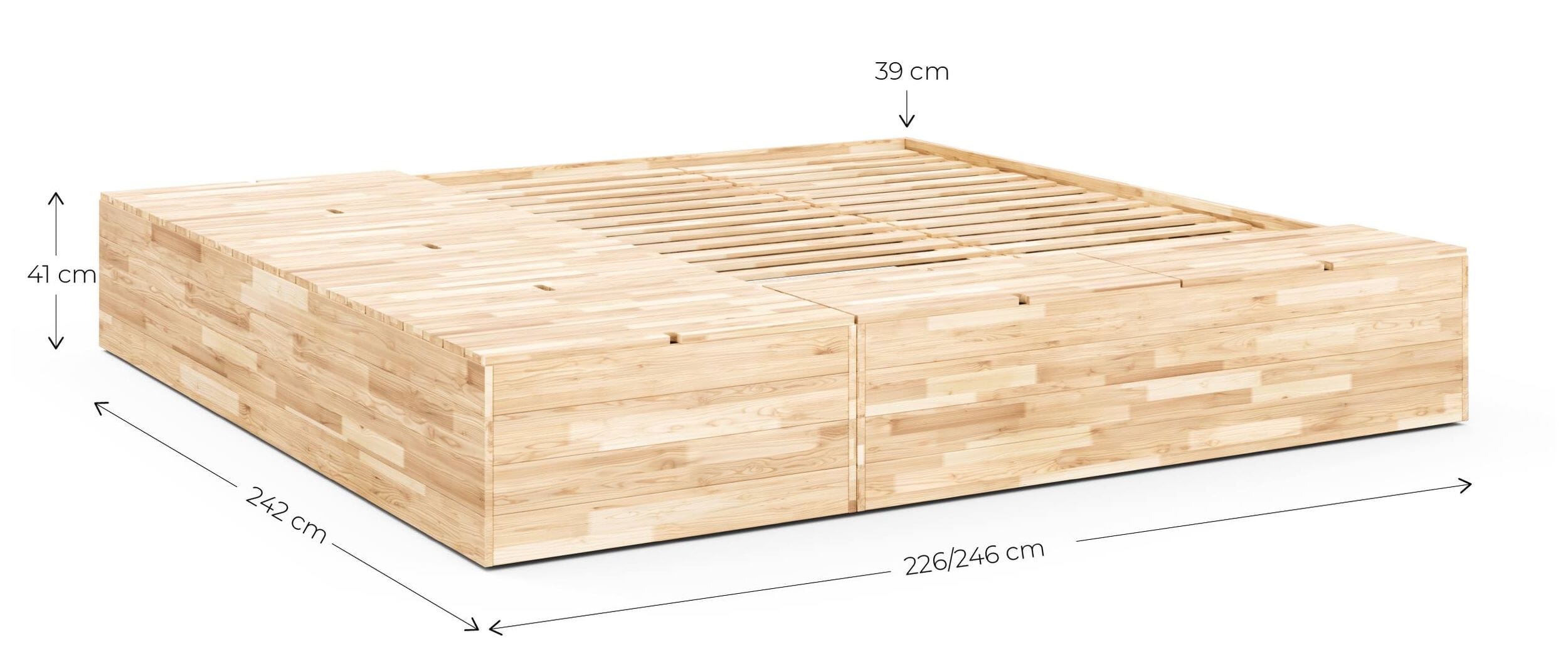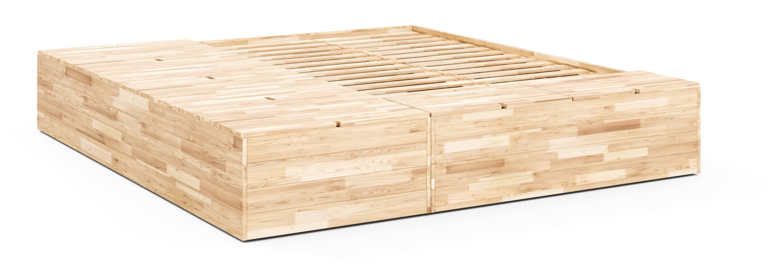 Massivholzbett BASEMENT BED mit viel Stauraum, Gestell Kiefer natur lackiert