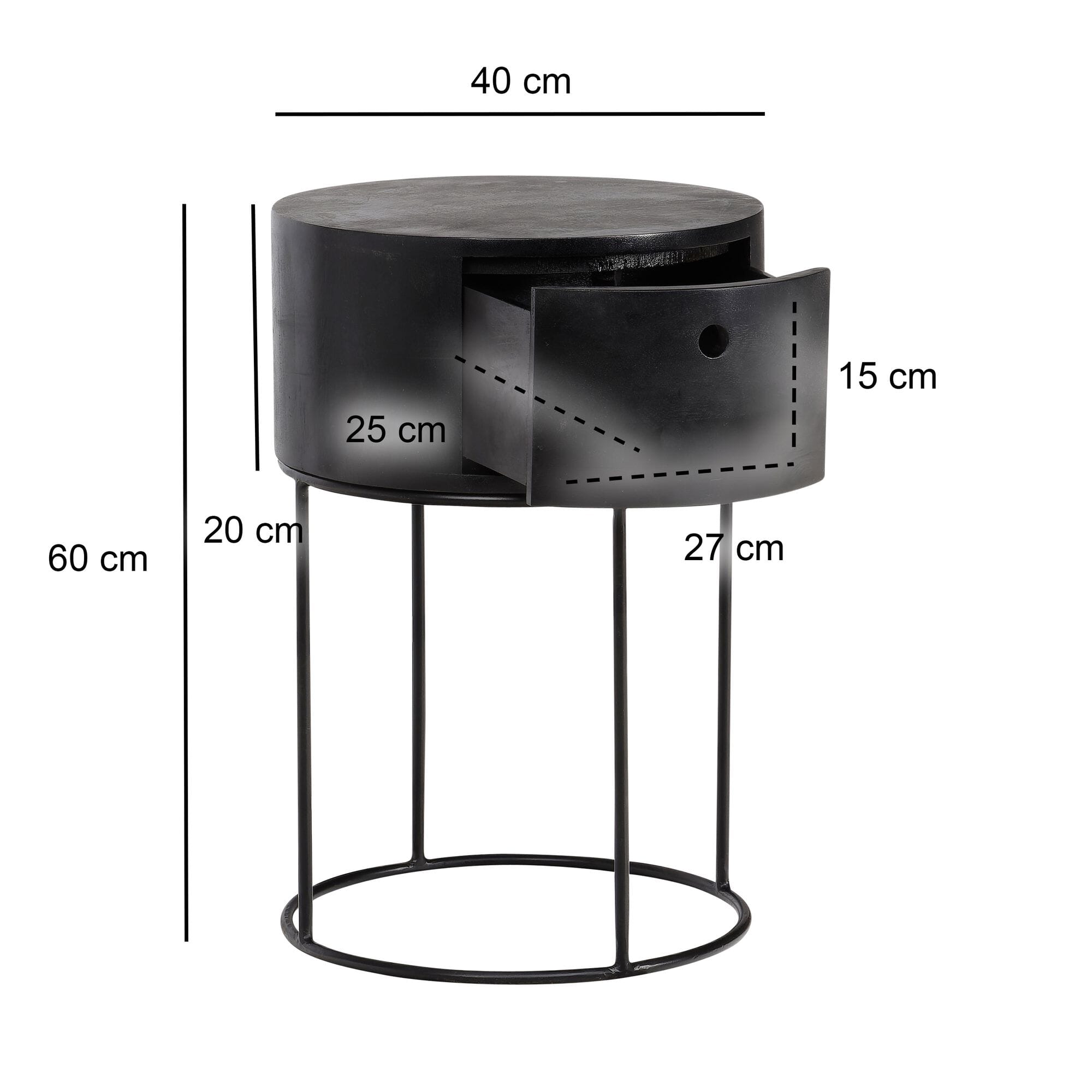 Nachtkonsole Mango Massivholz Metall Schwarz 40x40x60cm mit Schublade Stauraum