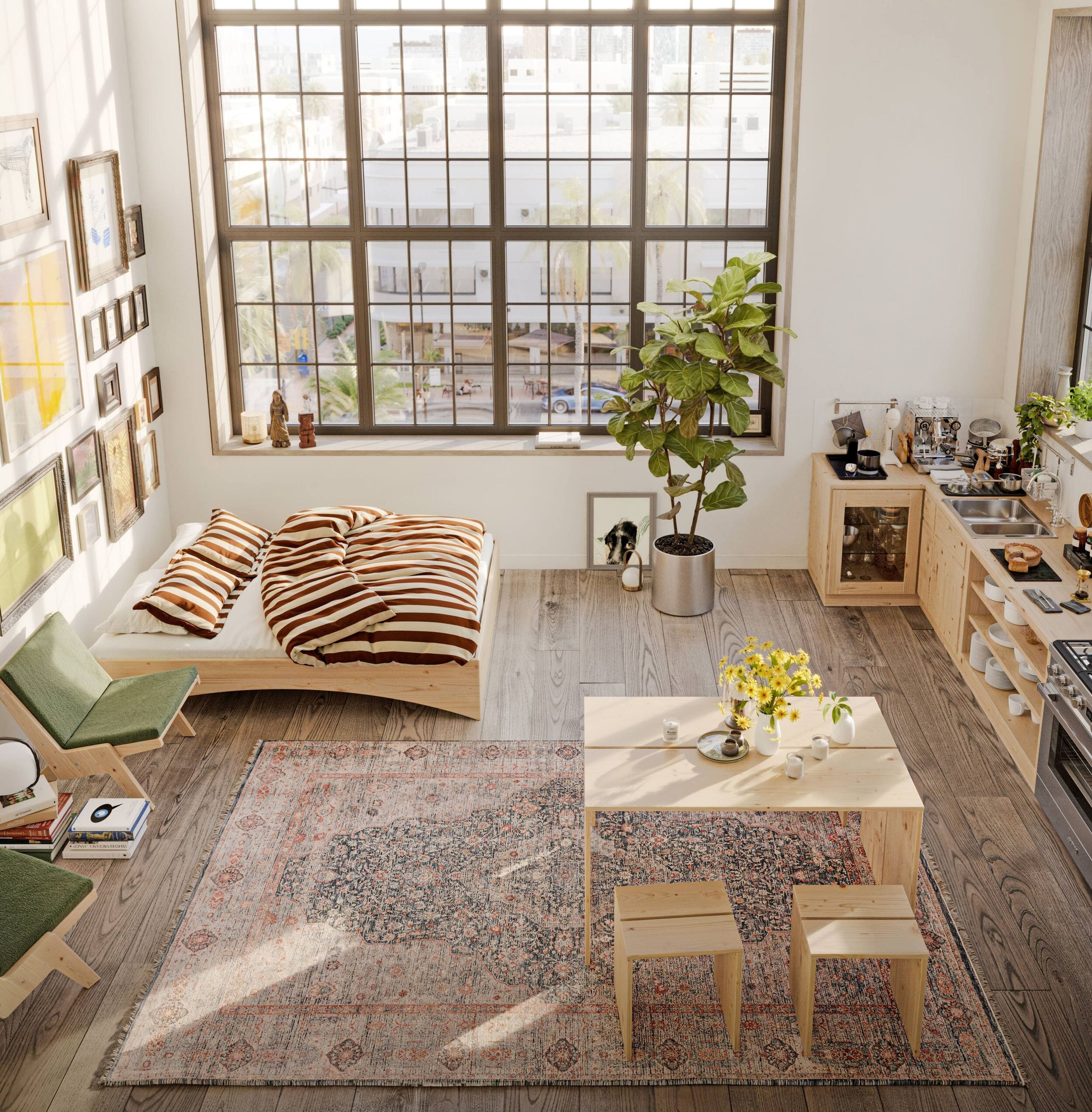 Massivholzbett ORBIT BED Raw Kiefer natur 140 x 200 cm