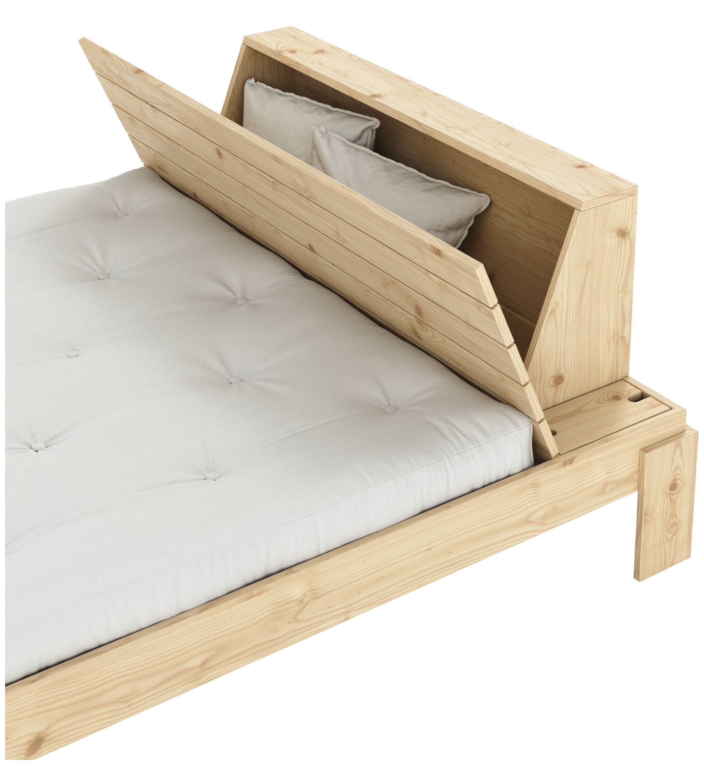 Massivholzbett Stauraumbett LAYERS BED HEADBOARD Kiefer natur 140 x 200 cm
