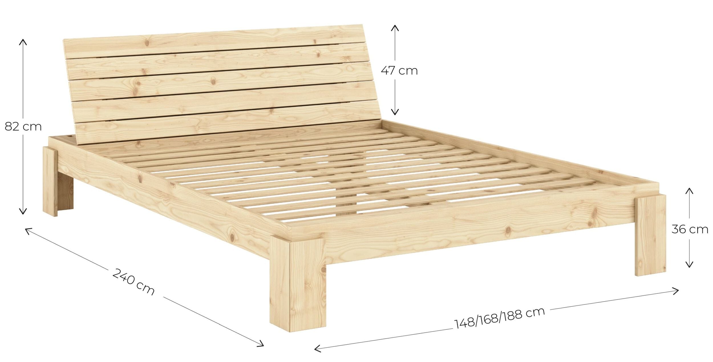 Massivholzbett Futonbett LAYERS BED mit Kopfteil, Gestell Kiefer natur lackiert