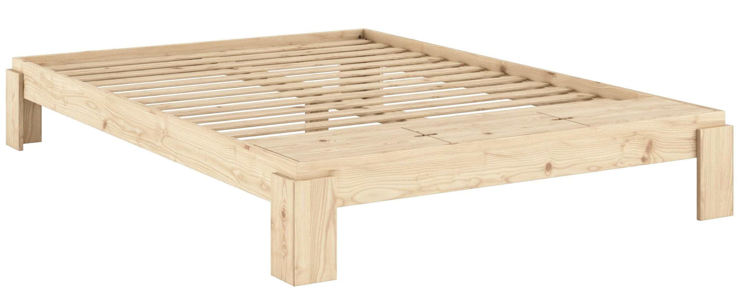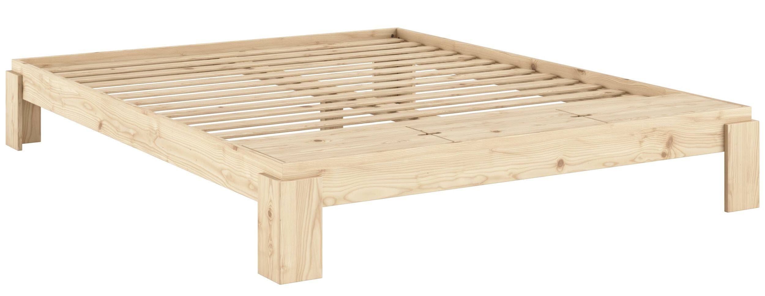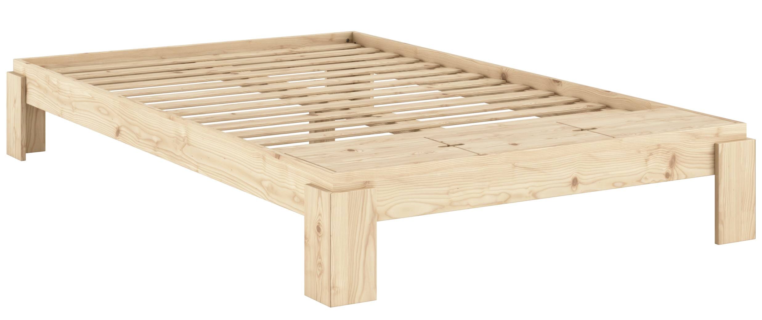 Das massive Holzbett hat eine maximale Tragkraft und wird aus zertifizierter Kiefer gefertigt. Die einzigartige Maserung ist mit einem Fingerabdruck vergleichbar und macht aus jedem Bett ein Unikat.