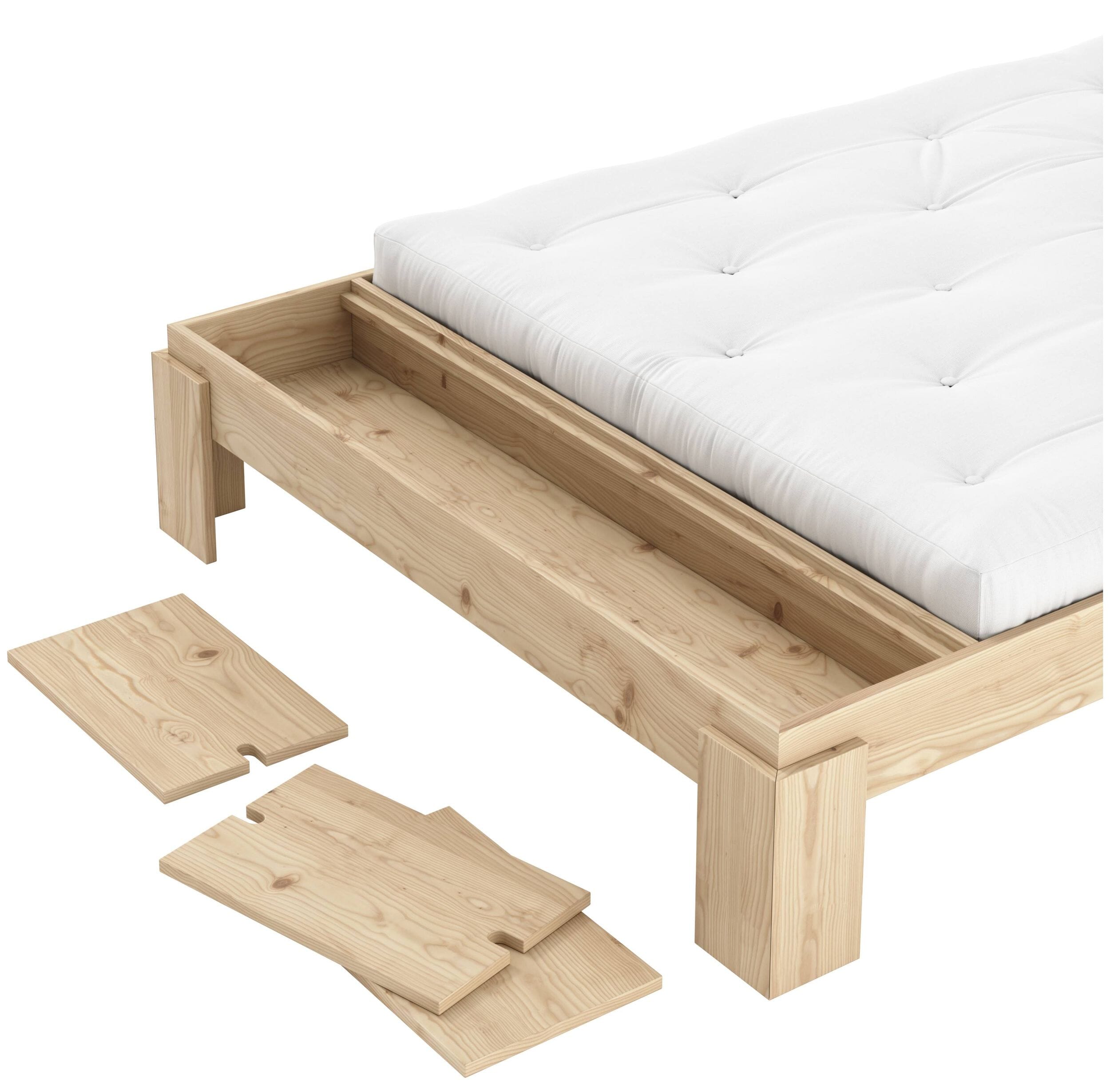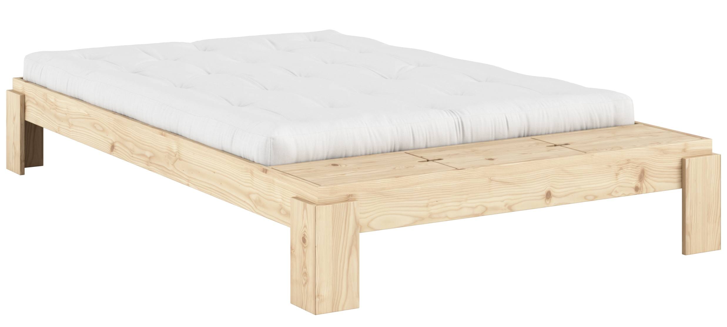 Massivholzbett Futonbett LAYERS BED mit integrierter Bank, Gestell Kiefer natur lackiert