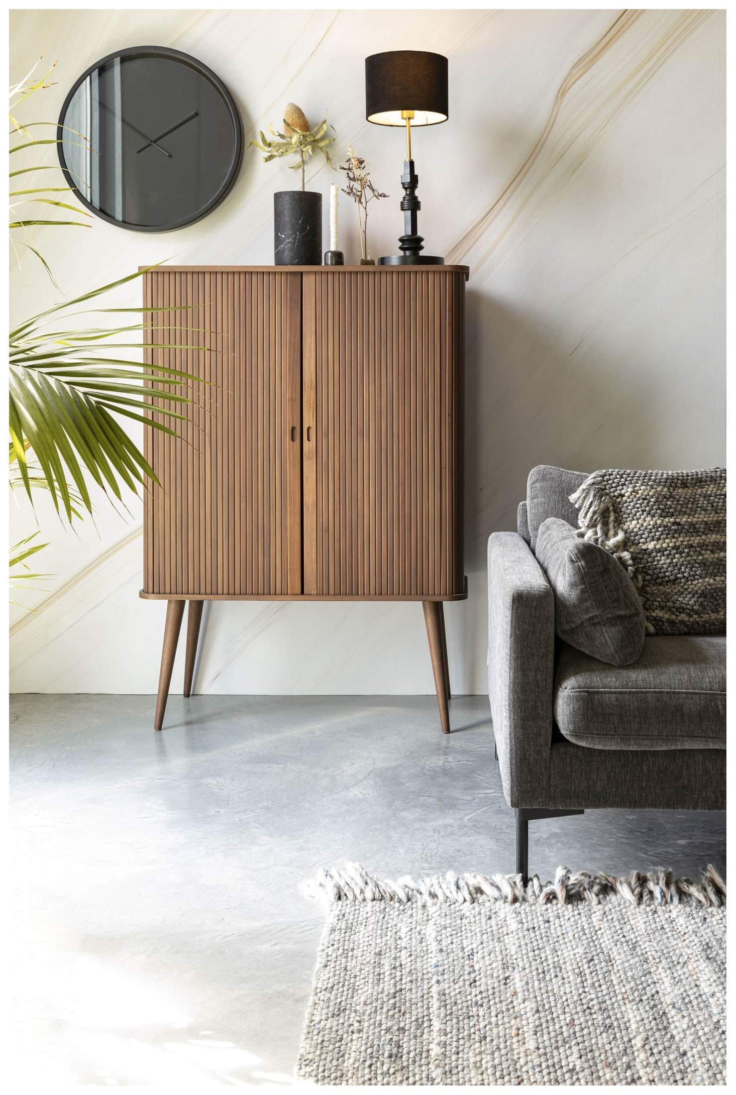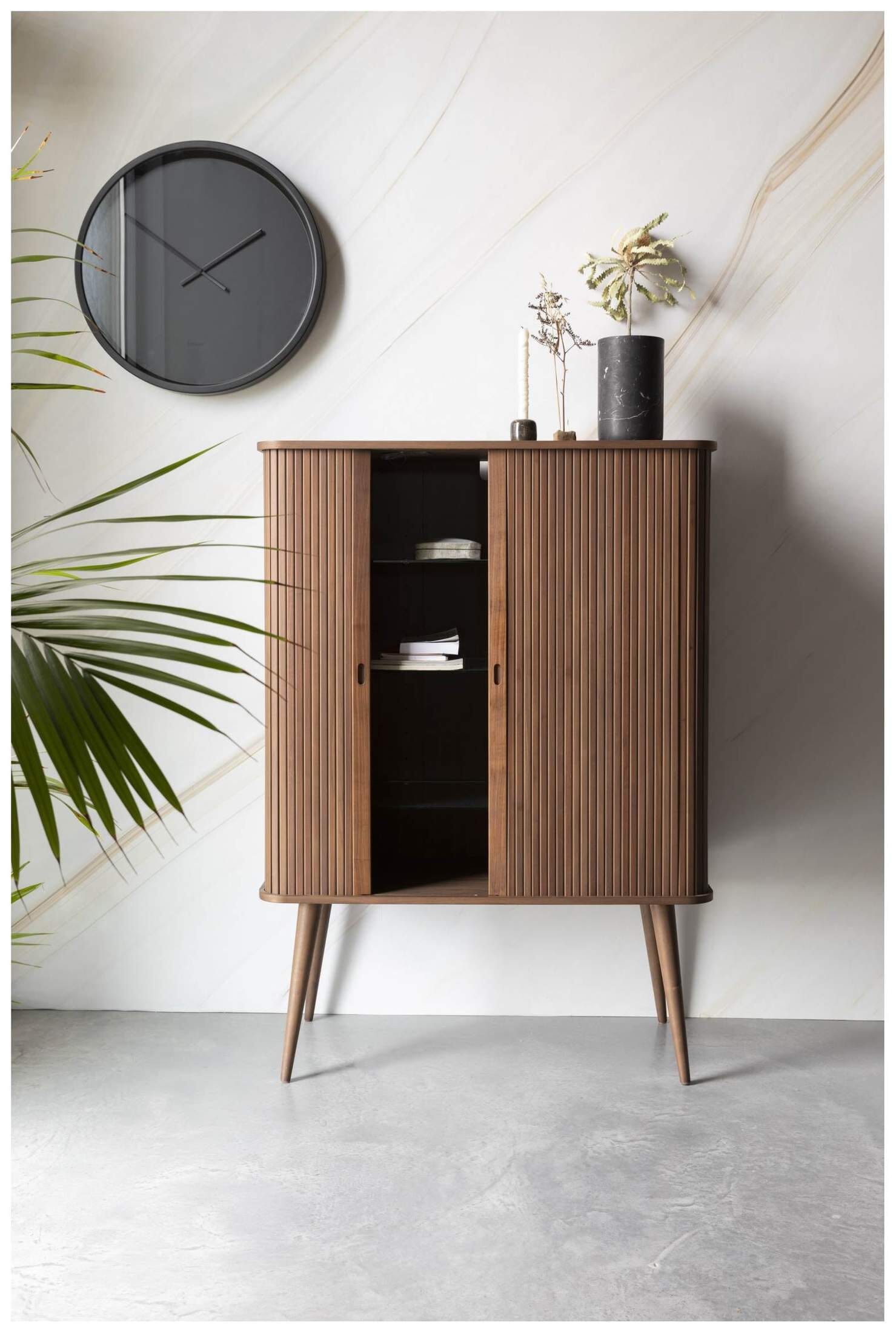Schrank Kommode BARBIER WALNUSS von ZUIVER mit Rollo Schiebetüren