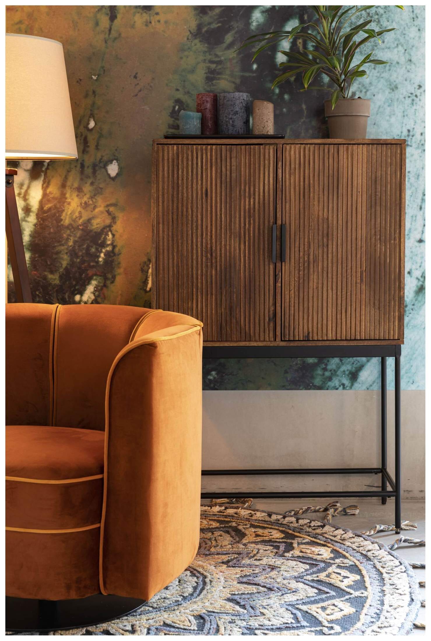 Die 2-türige Kommode SAROO von DutchBone ist funktional und besticht durch ihr einzigartiges Design im Industry-Look. Mit Ihren fein gemaserten Oberflächen aus honigfarbenem Mangoholz ist der schöne Schrank auf Metallfüßen ein Blickfang für Ihr stilvoll eingerichtetes Wohn-, Ess- oder Schlafzimmer. Der Innenraum ist mit einer Mittelseite und je 1 durchgehenden Fachboden unterteilt und bietet Stauraum für Bücher, Kleidung, Tischwäsche und Geschirr. Die Oberplatte der Kommode SAROO ist individuell dekorierbar.