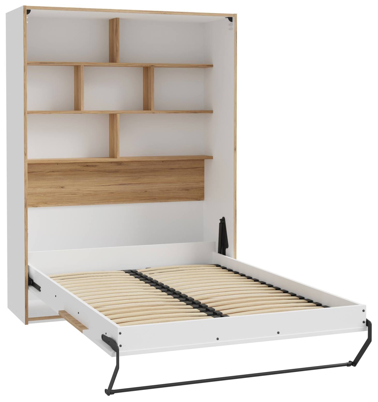 Schrankbett S-ROOM 140 x 200 Klappbett Weiß und Catania Eiche, Forte