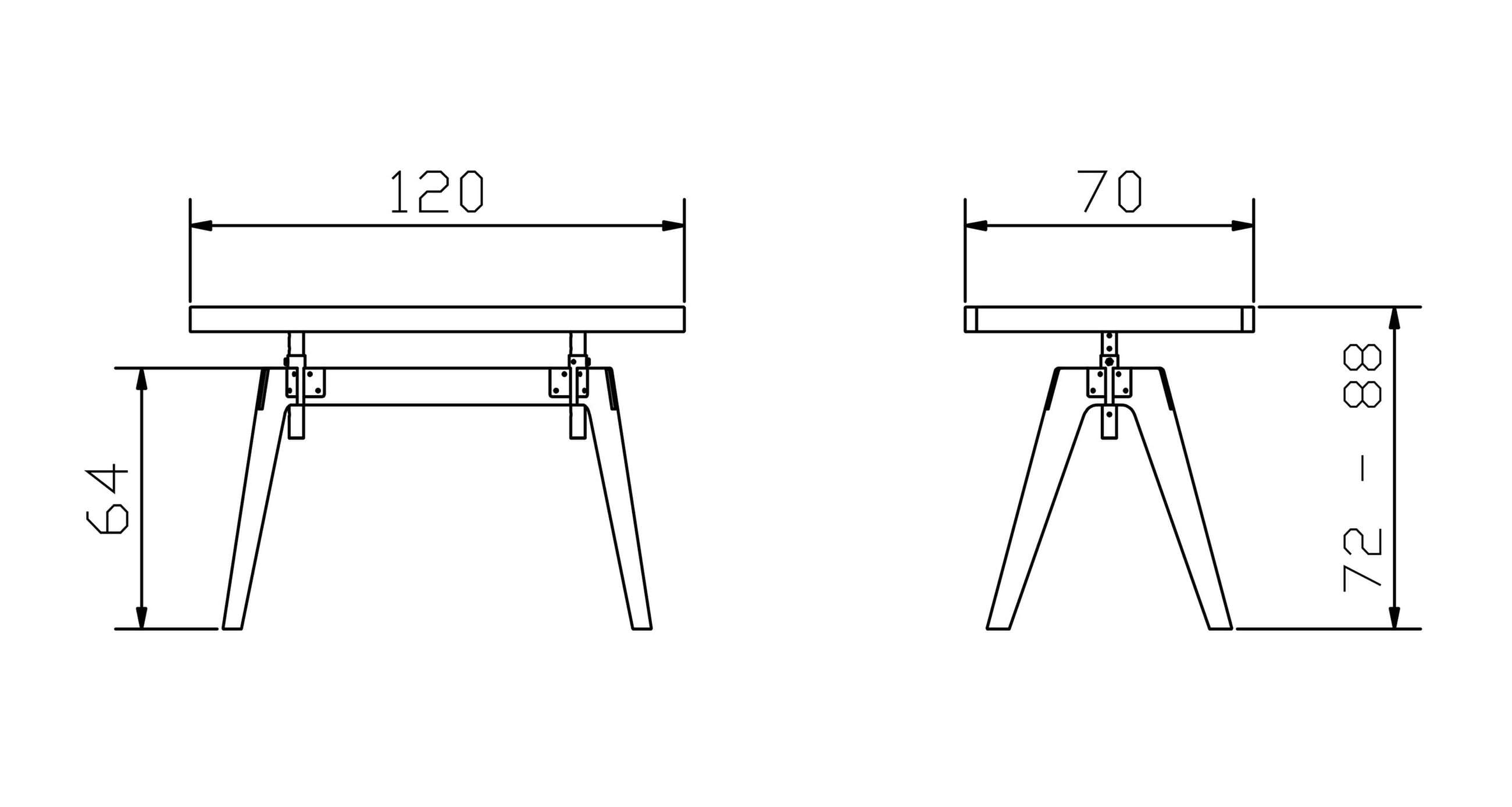 - Maße: B/H/T 120 x 72-88 x 70 cm