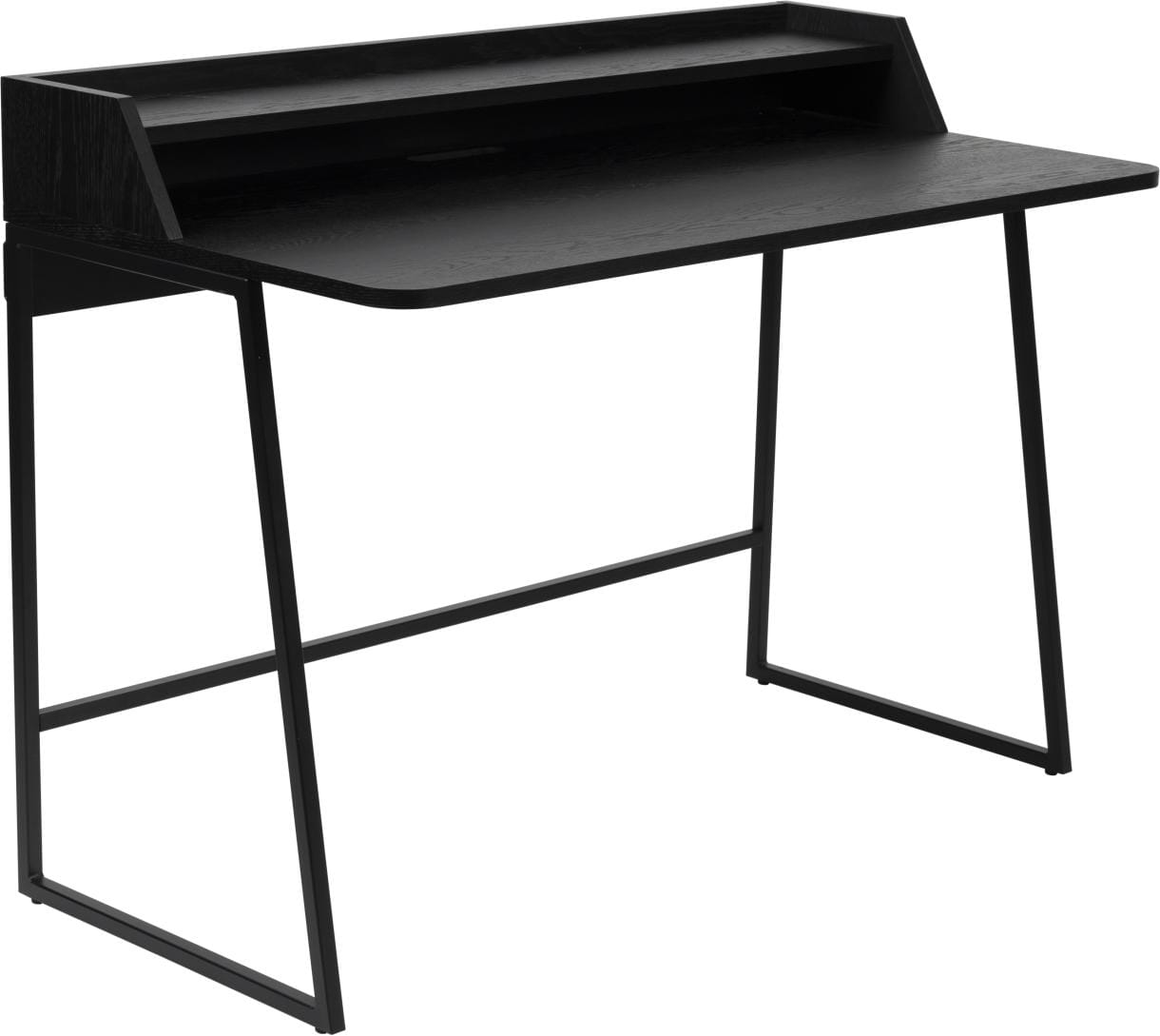 Der schlicht und dennoch elegant gestaltete Schreibtisch und Sekretär GIORGIO überzeugt Sie mit einer fein gemaserten Tischplatte im Dekor Eiche Furnier. Das stabile Untergestell aus Metall in der Farbe schwarz komplettiert das stilvolle Design.