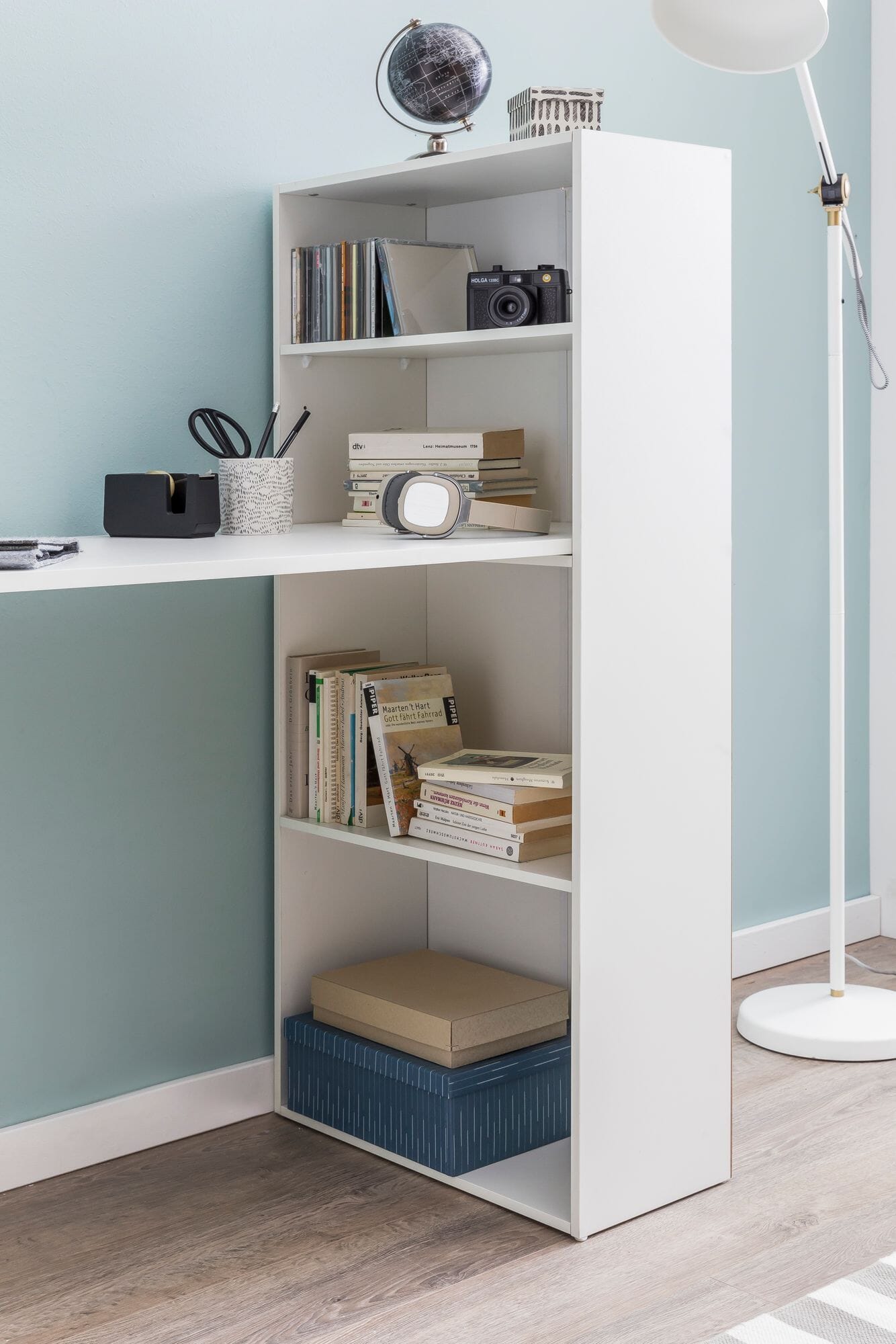 GESCHICKT UND PLATZSPAREND EINGEFÄDELT? Gerade in kleinen Wohnungen ist Stauraum nicht im Übermaß vorhanden. Auf einen eigenen, kleinen Arbeitsbereich möchten Sie dennoch nicht verzichten? Hier ist unser Arbeitstisch mit Regalkombination der richtige Wegbegleiter. Computer, Bücher und Co. finden in den geräumigen Ablagefächern einen festen Platz. Passt optimal ins Home Office oder auch ins Jugendzimmer.
