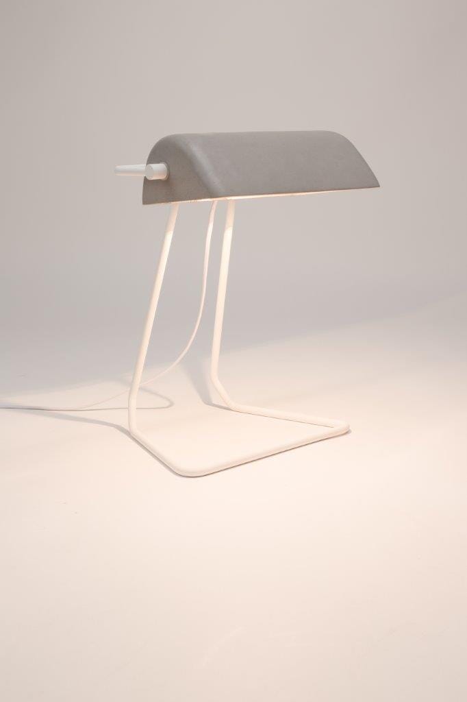 Bei der Schreibtischlampe Broker in Betonoptik kommt keine Langeweile auf.