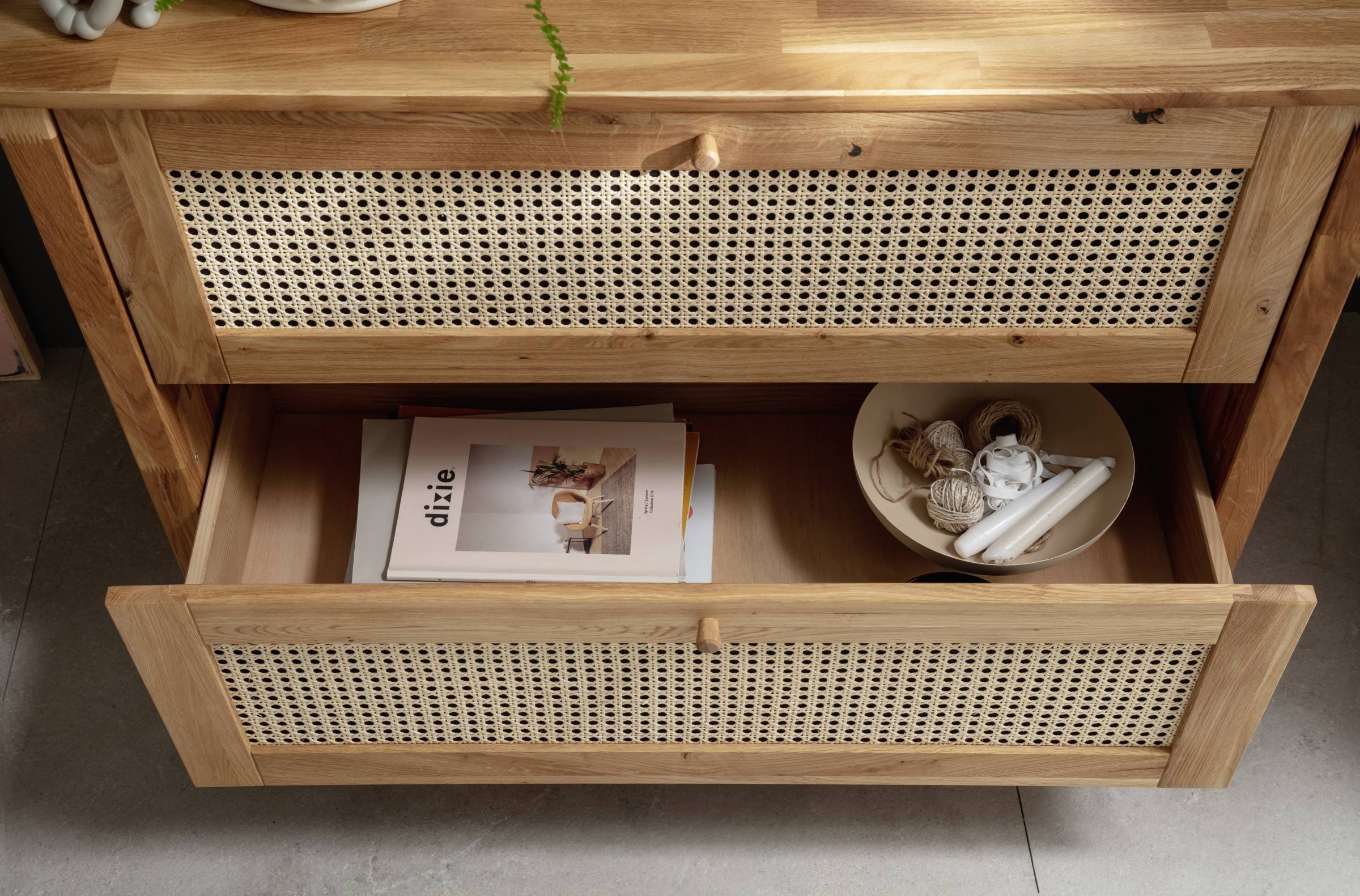 Schubladenkommode FRIA 2 Schubladen Wildeiche mit Wiener Geflecht