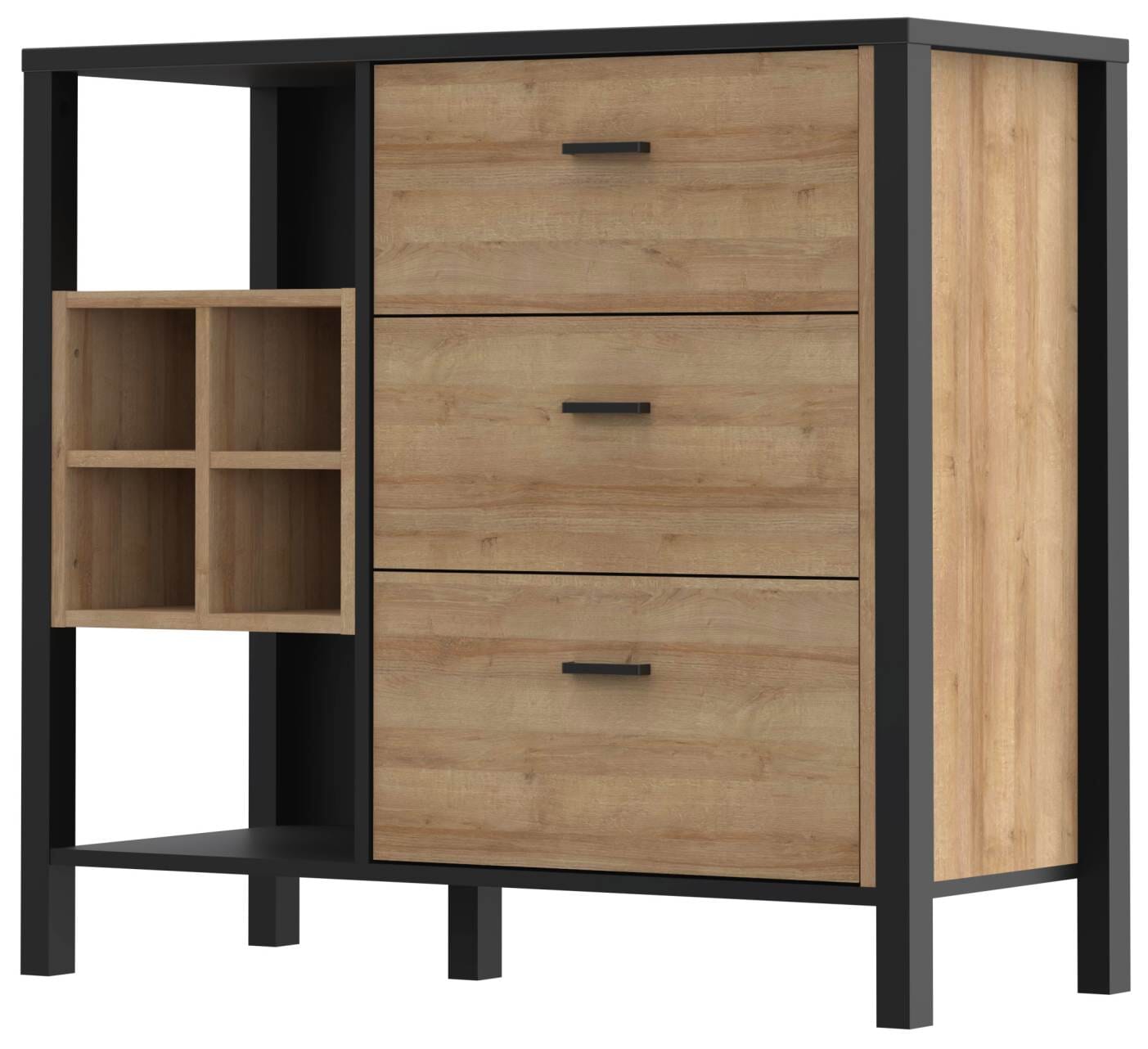 Schubladenkommode HIGH ROCK K222 Riviera Eiche Optik / Schwarz, Forte