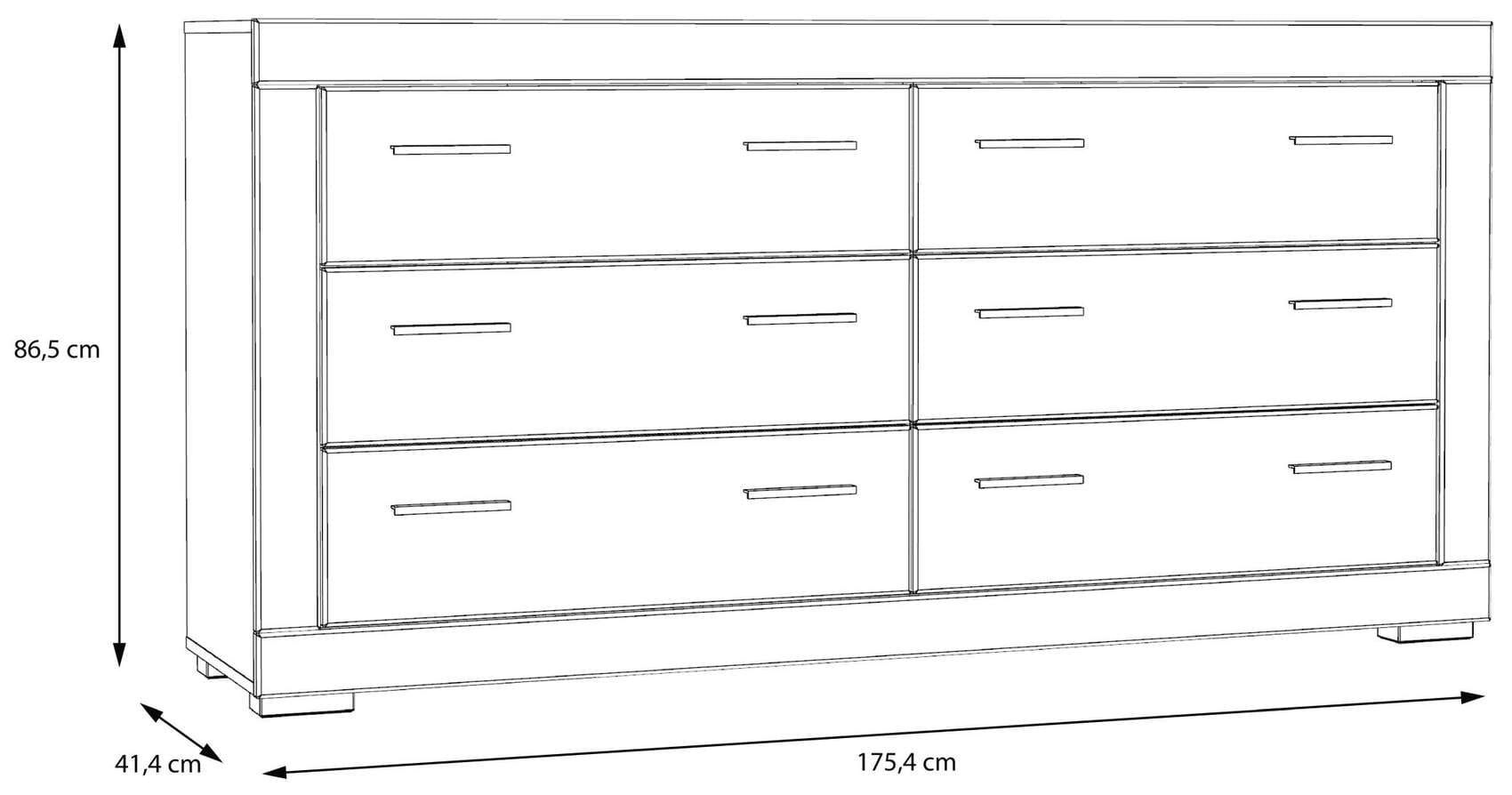 Die sechs Schubladen laufen leise auf einem Metall-Auszug und Metall-Griffe ergänzen das Möbel, das Sie in jedem Raum gewinnbringend einsetzen können.