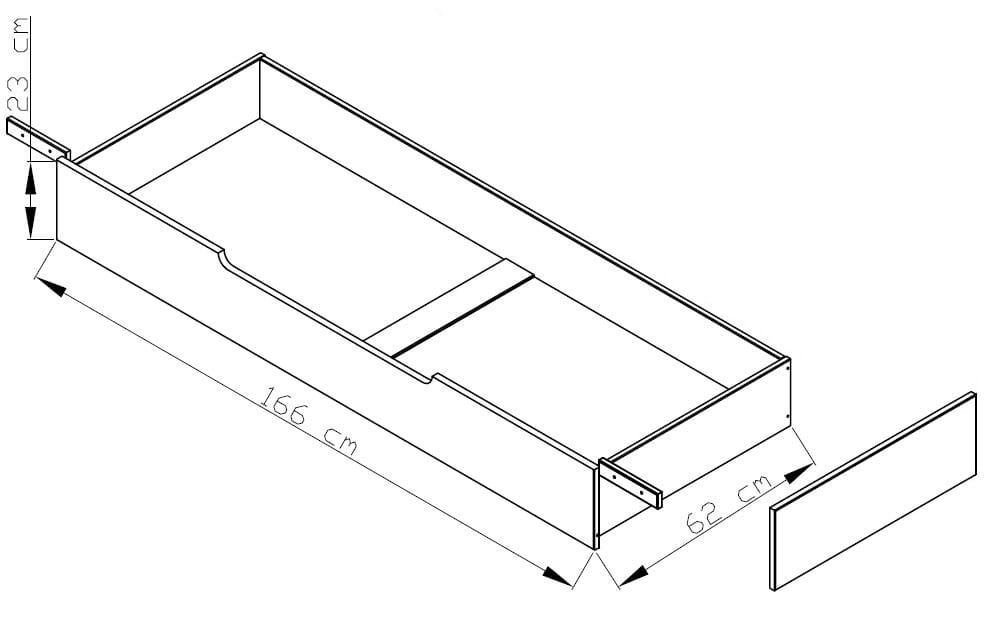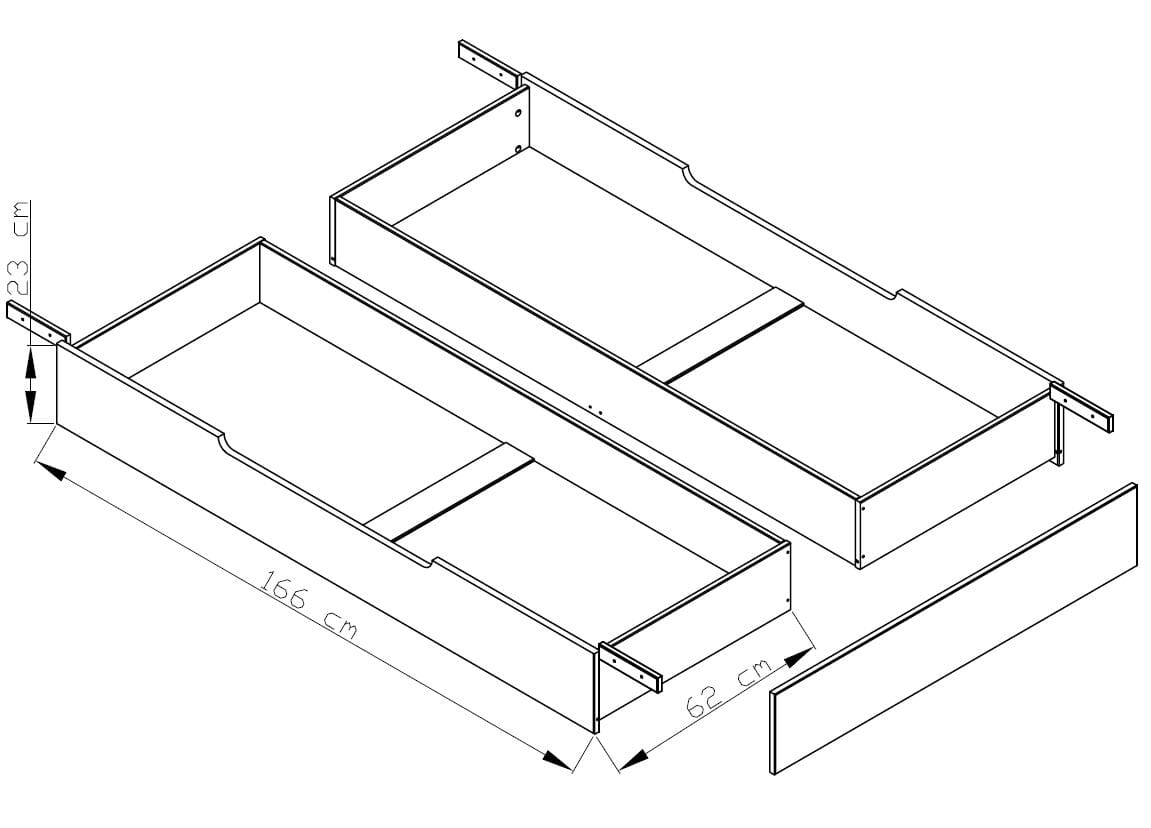 - Schubladenmaße: jeweils B/H/T 166 x 23 x 62 cm