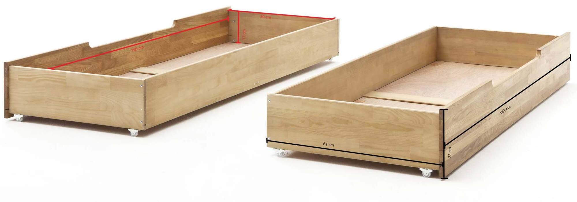 Das ideale Zubehör, wenn Sie den Platz unter Ihrem Massivholzbett NILAS oder OWE sinvoll nutzen möchten.