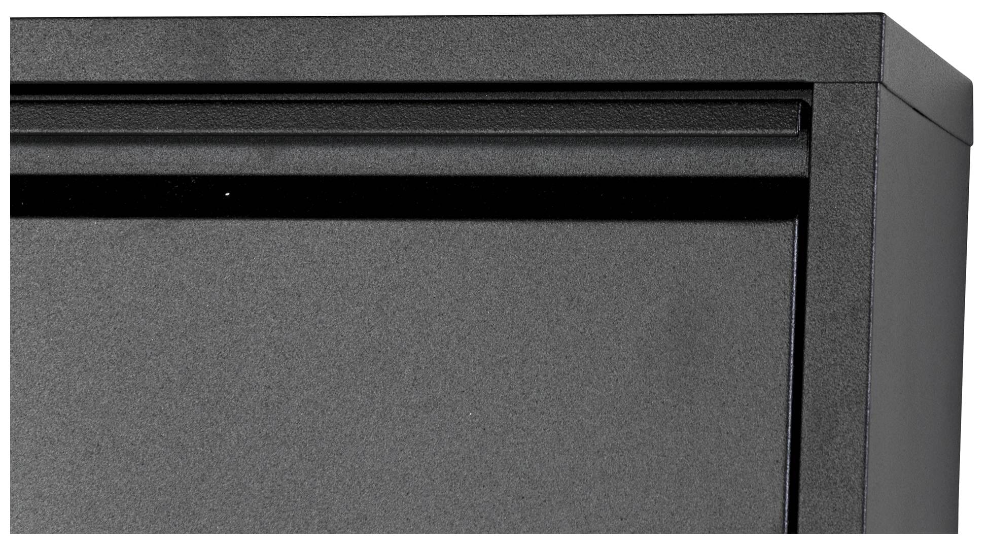 Die pulverbeschichtete Oberfläche in Schwarz ist sehr pflegeleicht. Einfach abwischen - fertig. Da es den 150 cm großen Billy nur in Schwarz gibt, könnte man diesen mit anderen BILLY´s kombinieren.