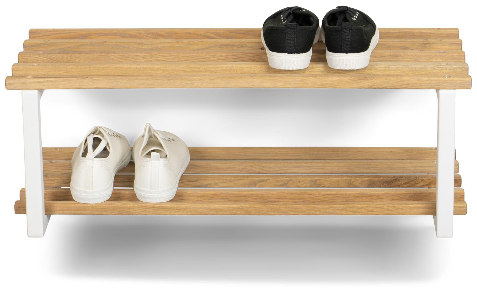 Schuhregal Flurregal RIZZOLI / MARCO Weiß mit 2 Ablagen in Eiche