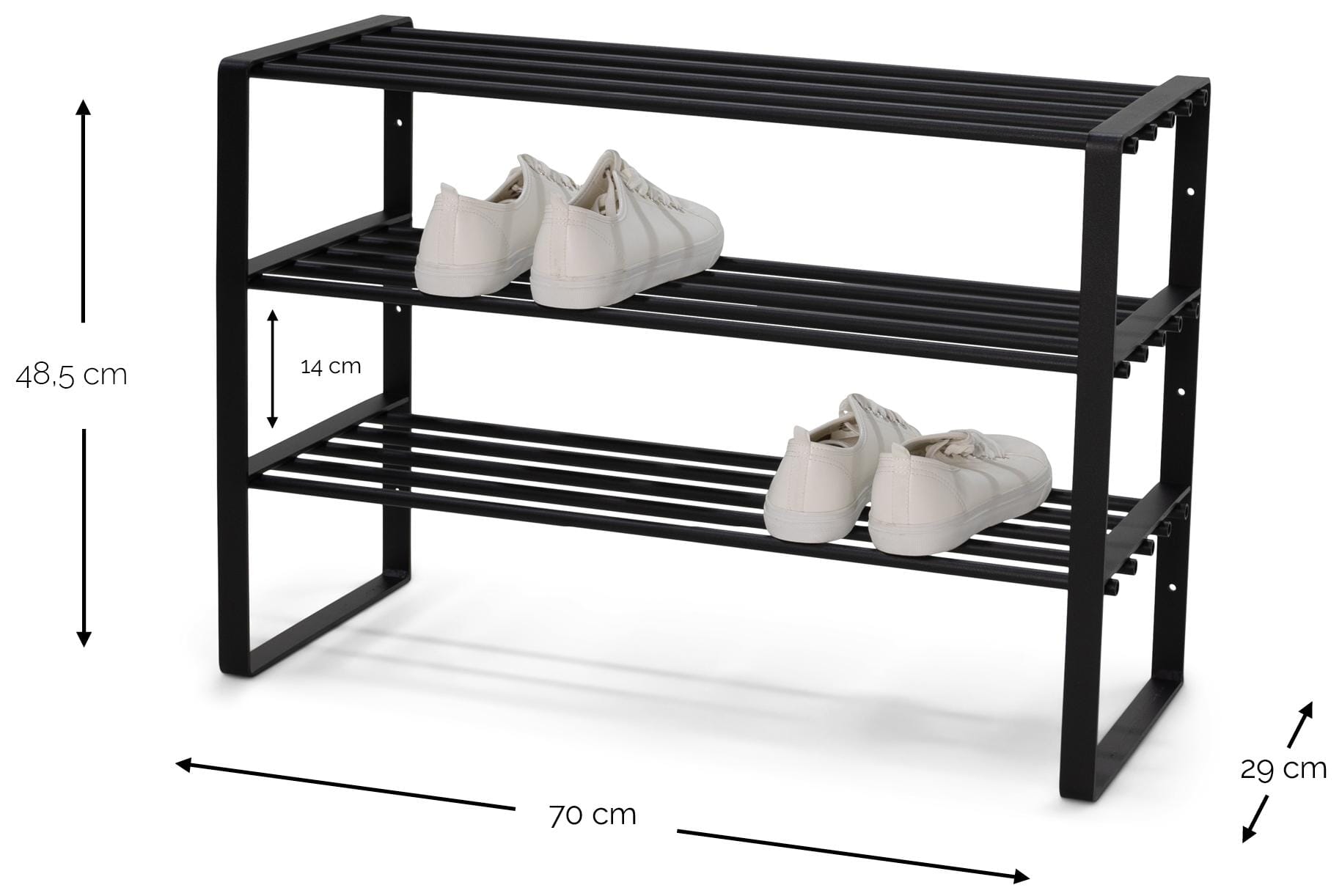 Schuhregal REX SR 2, Schwarz pulverbeschichtet.