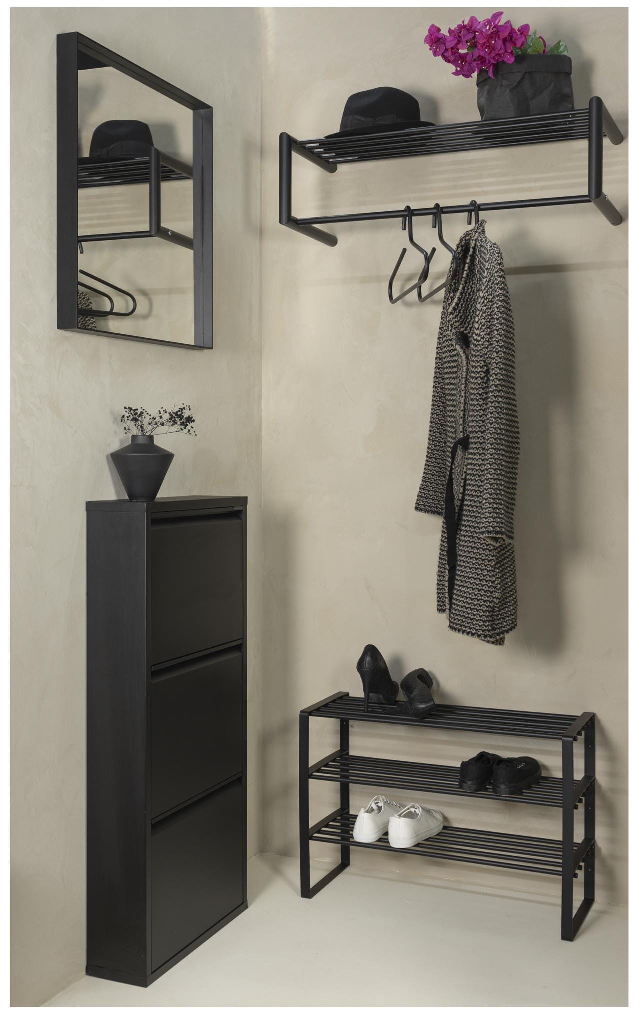 Schuhregal REX SR 2 Schwarz, mit 3 Ablagen