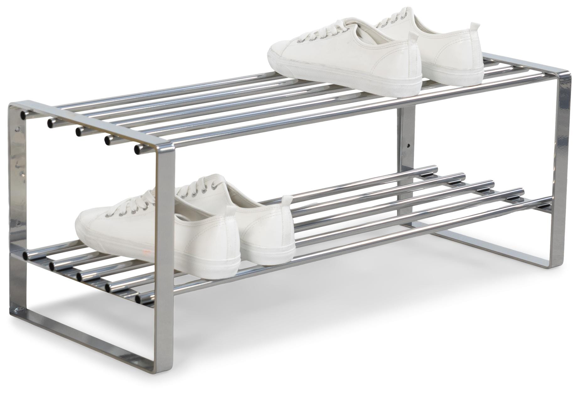 Schuhregal REX SR, Stahlrohr in Nickeloptik.