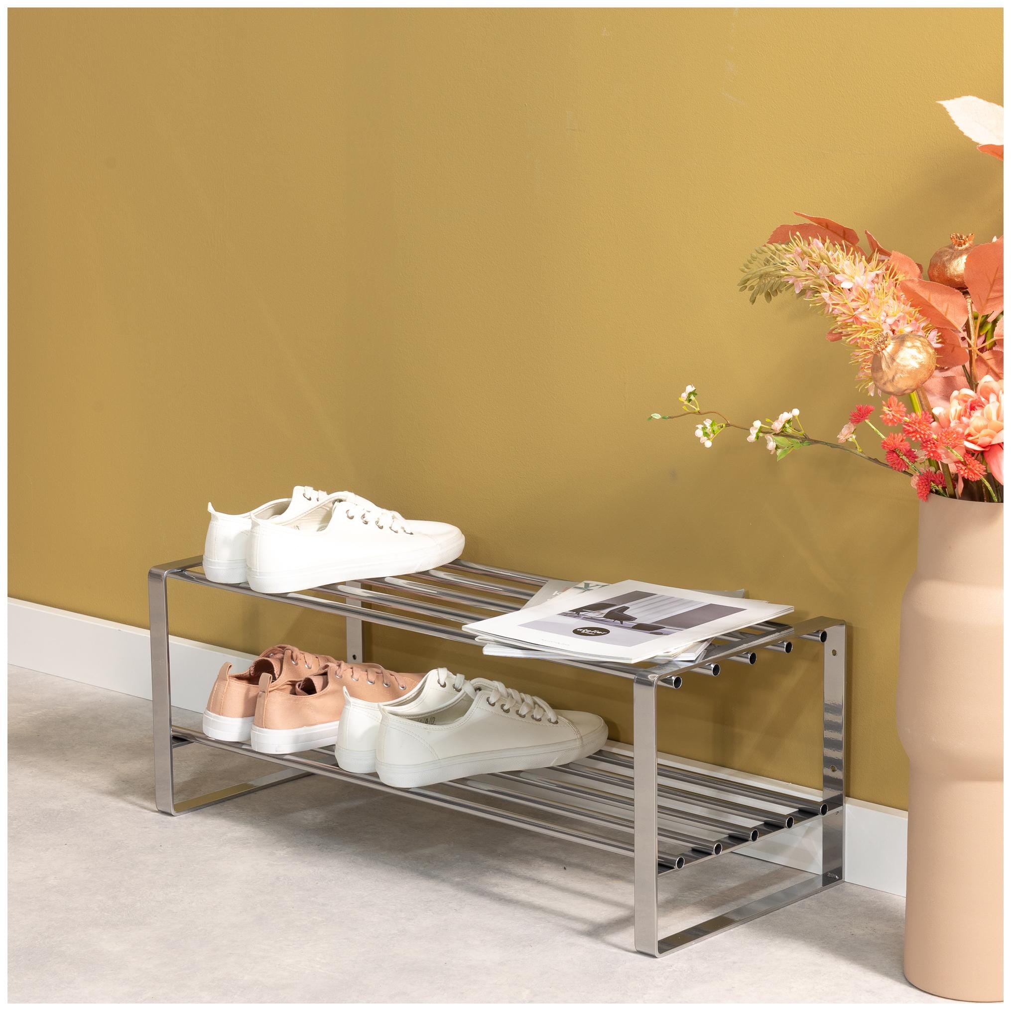 Schuhregal REX SR in Nickeloptik mit 2 Ablagen Flurregal von Spinder