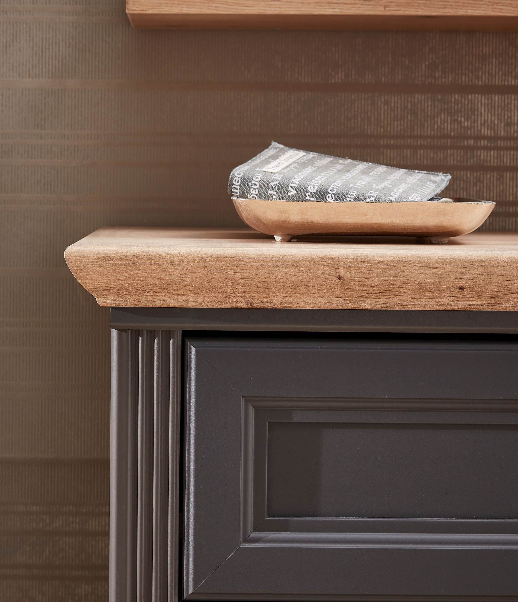 Zwei Türen weisen den Weg zu den Schuhen, aber sie verbergen sie auch geschickt. So wirkt immer alles klasse aufgeräumt, und halsbrecherische Aktionen, bei denen man über einen Schuh stolpert, gehören der Vergangenheit an. Die klare Farbgebung, ein elegantes Graphit Dekor, sorgt für einen Hauch von Cottage Style.