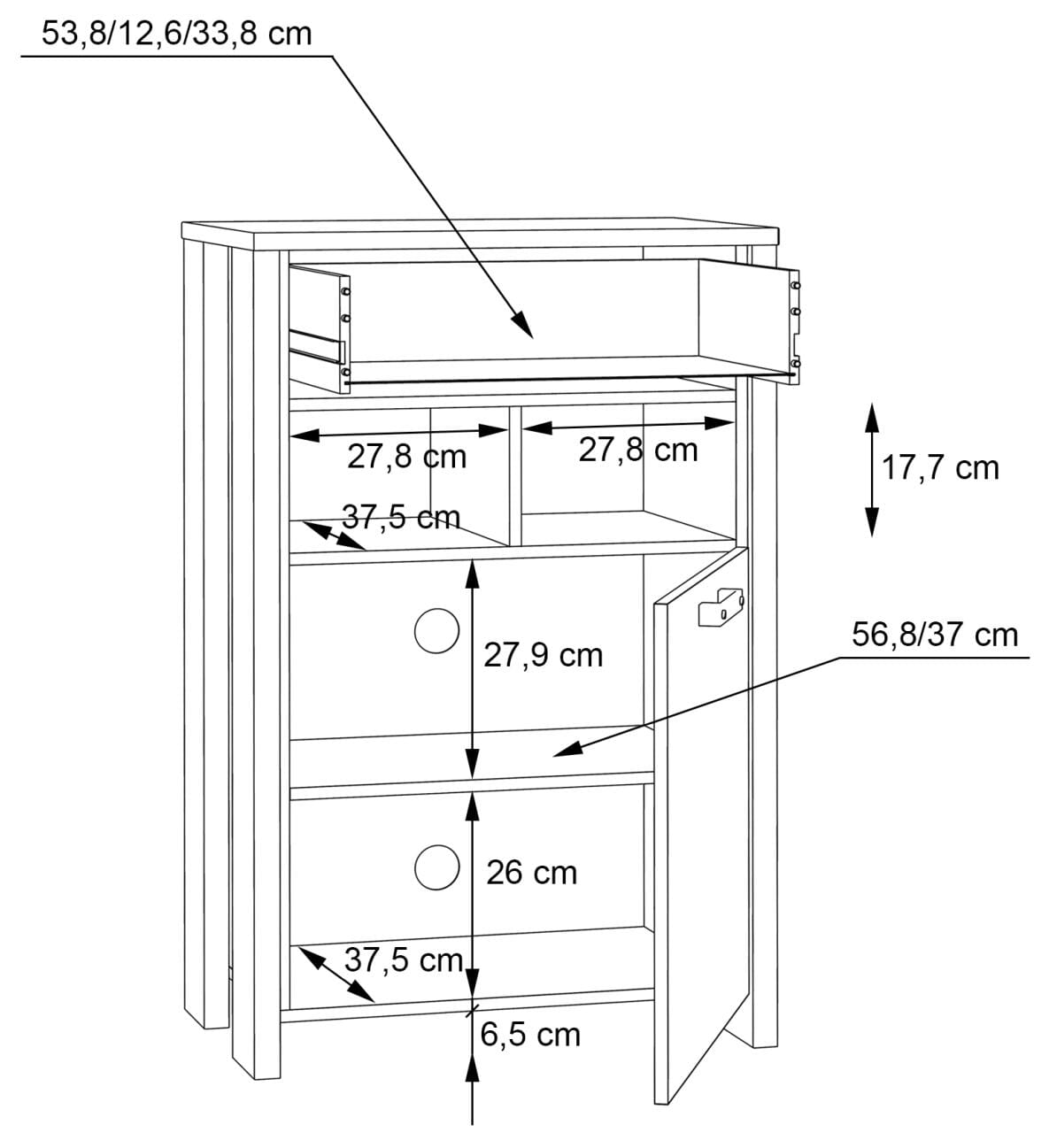 - offenes Fach, 2-geteilt B/H/T 27,8x17,7x37,5 cm