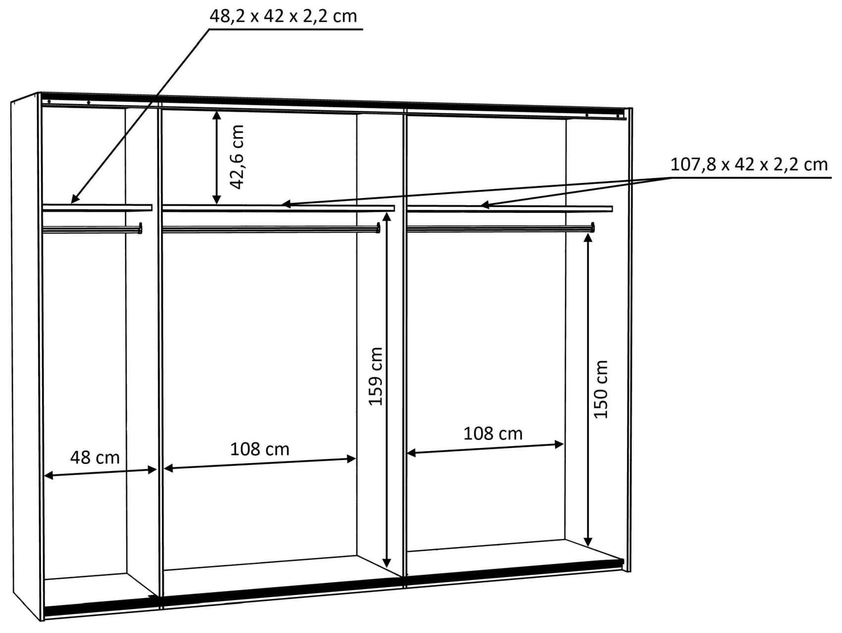 - 3 Kleiderstangen und 3 Fachböden