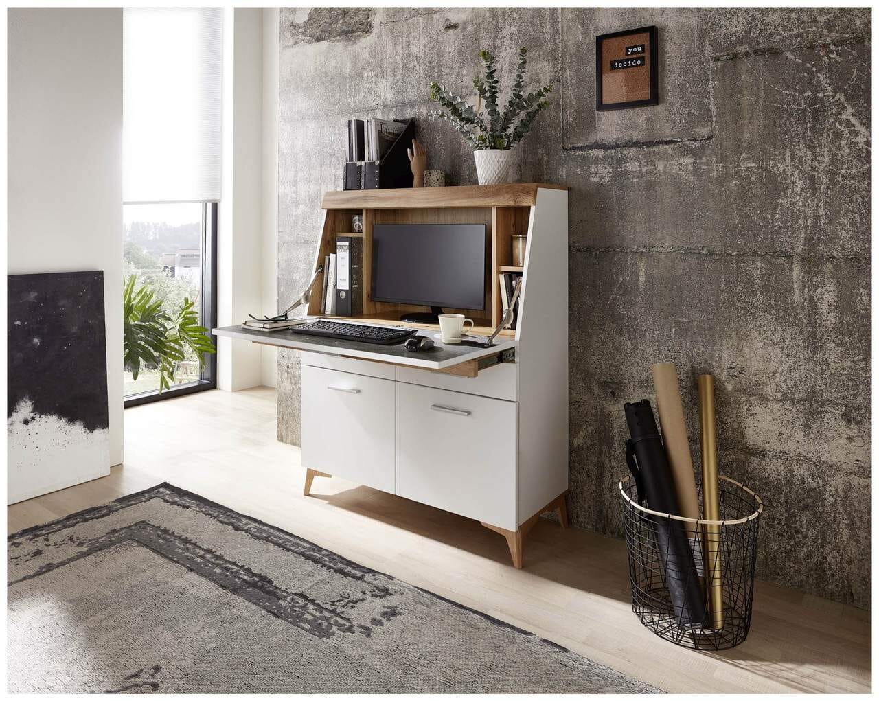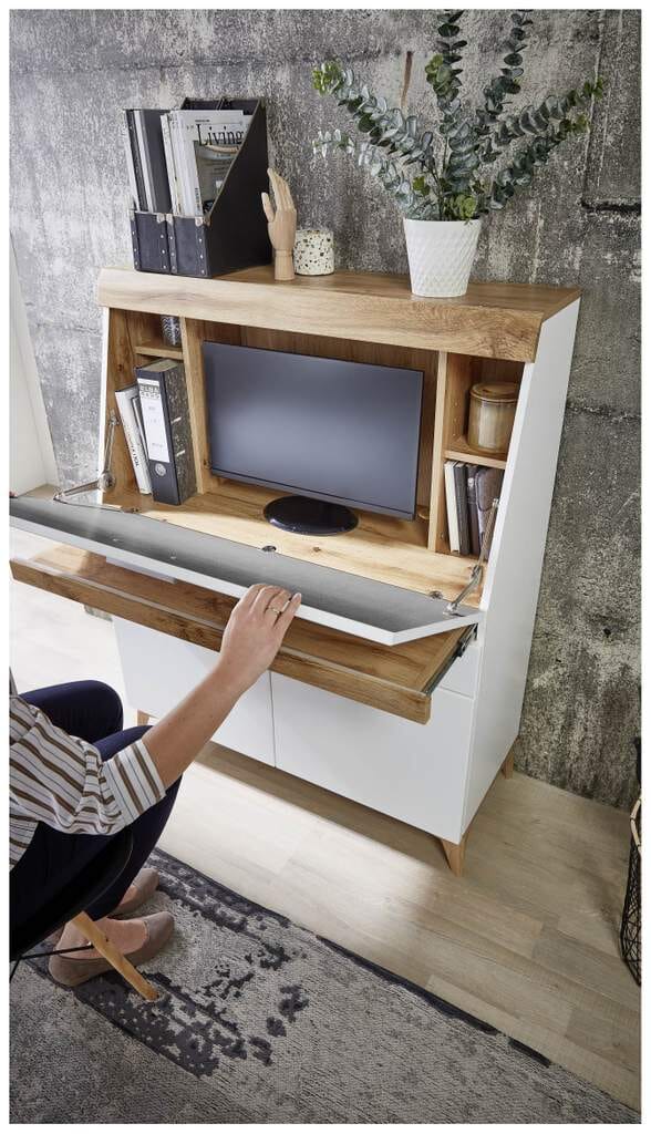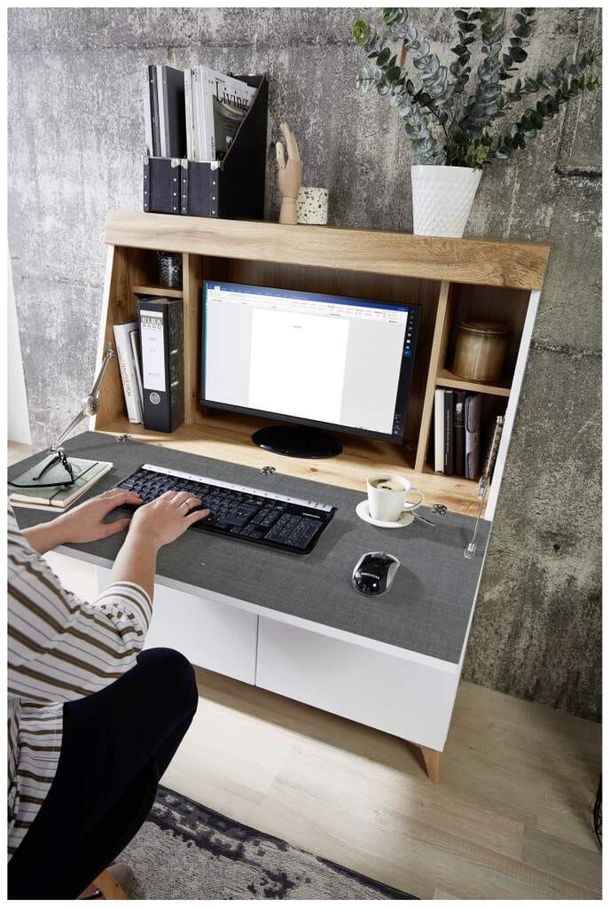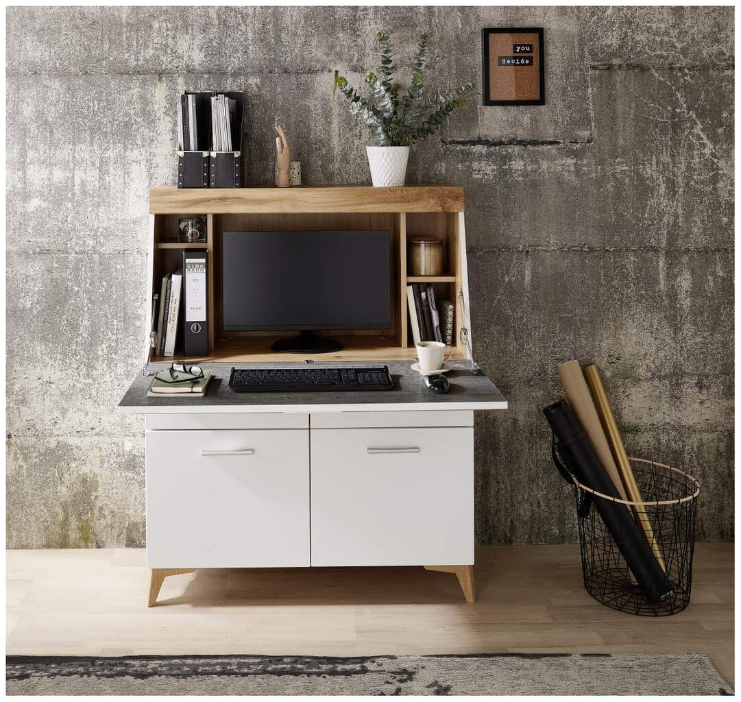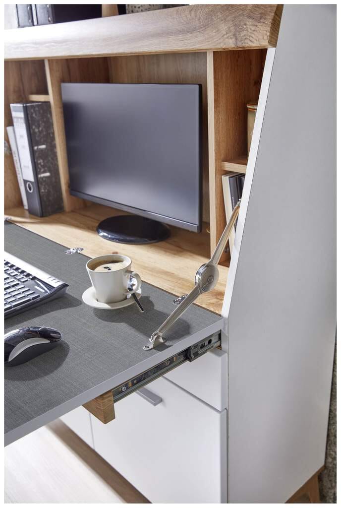 Sekretär SECRET Weiß mit Eiche Altholz mit Platz für einen Monitor