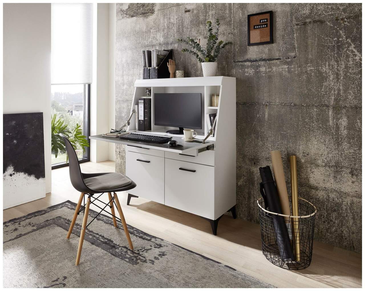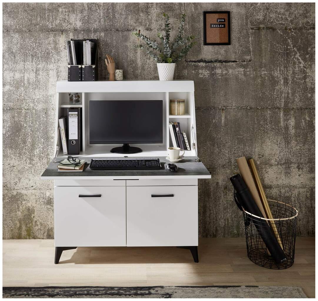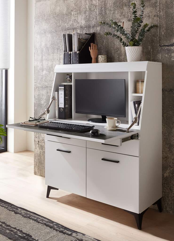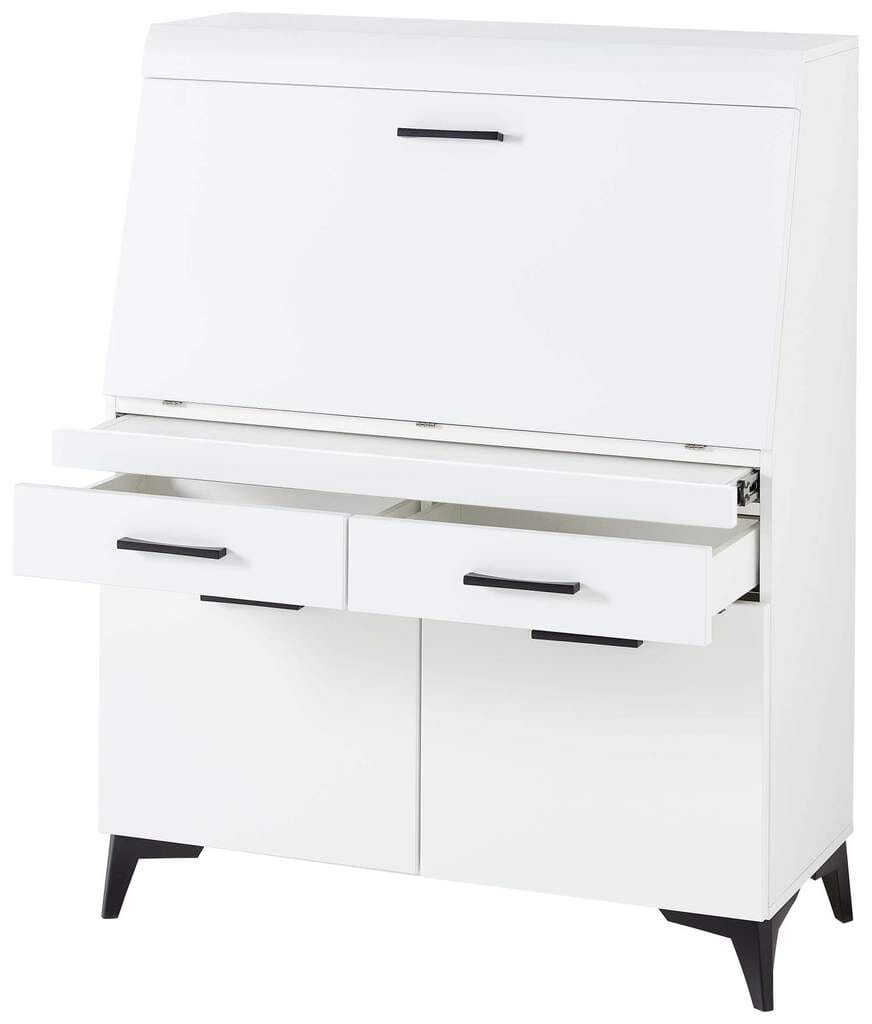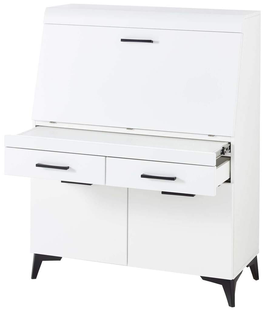 Sekretär Schreibtisch SECRET Weiß mit schwarzen Griffen und Beinen von Innostyle