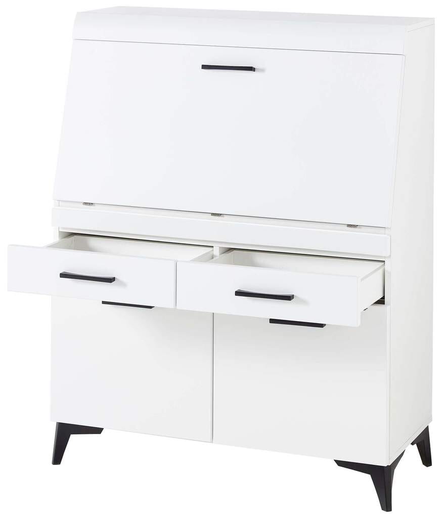 Sekretär Schreibtisch SECRET Weiß mit schwarzen Griffen und Beinen