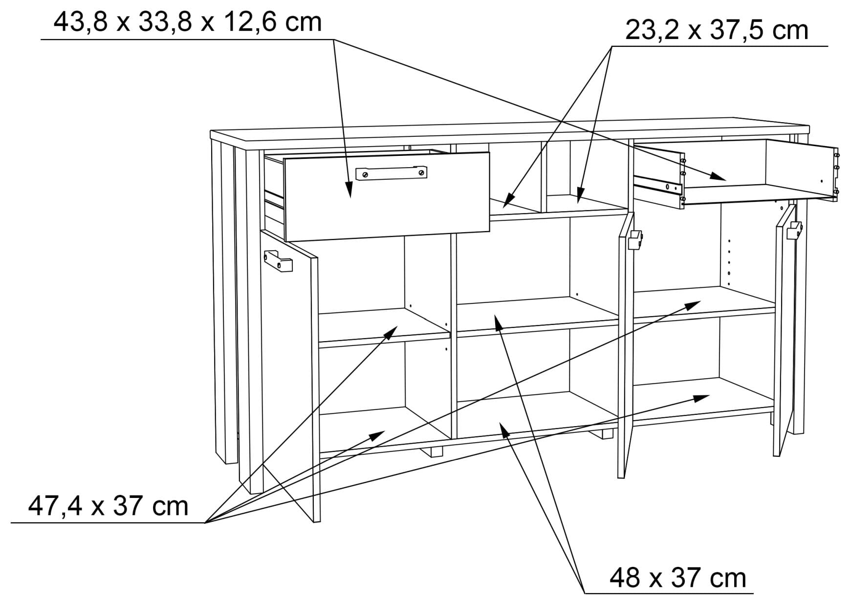 Das Sideboard CLIF ist ein interessanter Mix aus Fächern, also Offenem, und Verborgenem. Ungeahnte Möglichkeiten tun sich für Sie auf, wenn Sie daran gehen, diese Kommode zu befüllen.