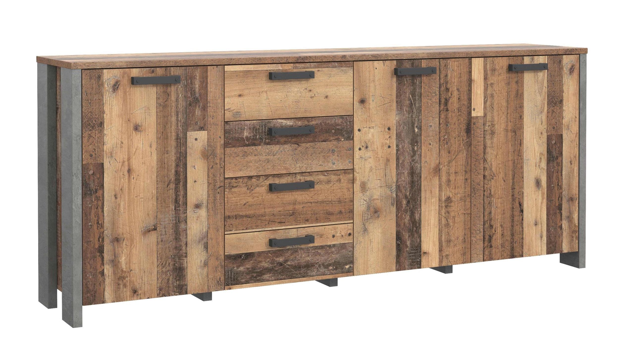 Sideboard CLIF, mit 3 Türen 4 Schubladen, Optik: Old Wood Vintage