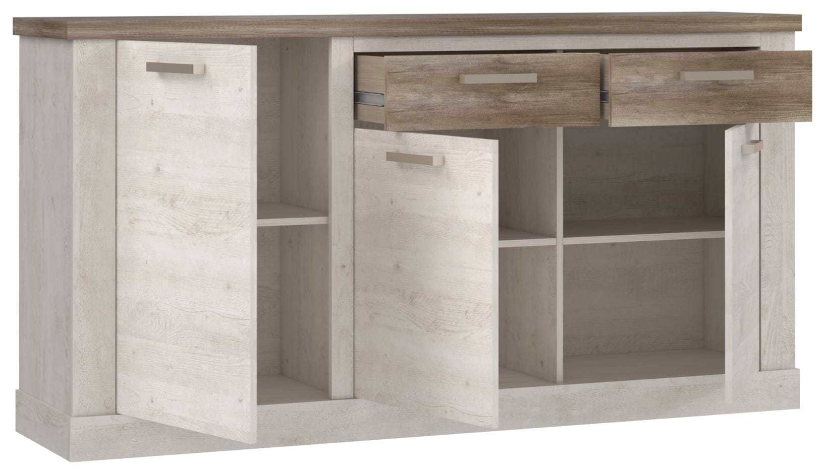 Sideboard DURO, Optik Pinie weiß und Eiche antik